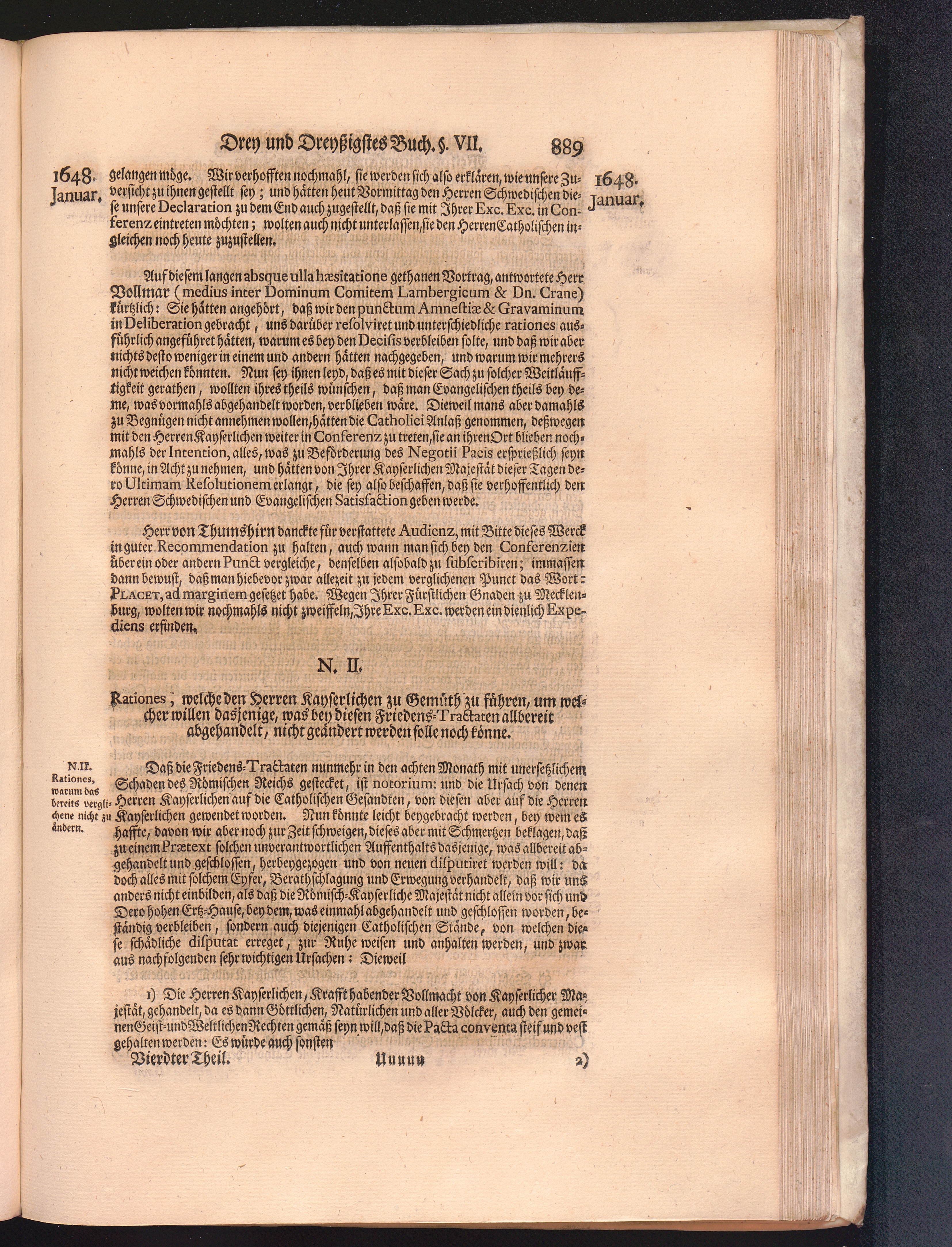 Vierdter Theil (1735) Worinnen enthalten, was vom Anfang des Jahrs 1647. biß gegen Ende desselben zwischen Jhro Römisch-Kayserlichen Majestät, dann den Beyden Cronen Franckreich und Schweden, ingleichen des Heiligen Römischen Reichs Chur-Fürsten, Fürsten und Ständen, zu Oßnabrück und Münster gehandelt worden
