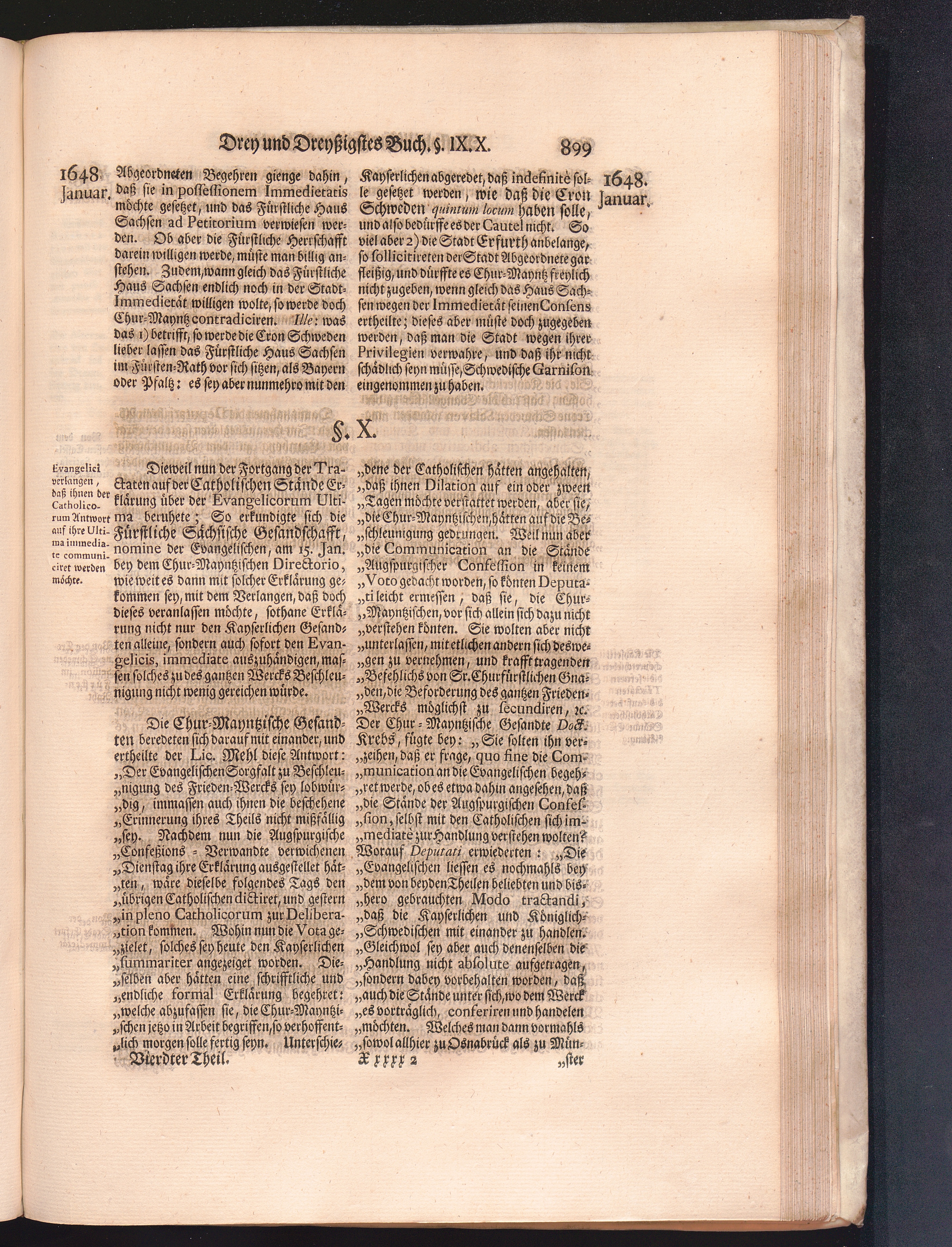 Vierdter Theil (1735) Worinnen enthalten, was vom Anfang des Jahrs 1647. biß gegen Ende desselben zwischen Jhro Römisch-Kayserlichen Majestät, dann den Beyden Cronen Franckreich und Schweden, ingleichen des Heiligen Römischen Reichs Chur-Fürsten, Fürsten und Ständen, zu Oßnabrück und Münster gehandelt worden