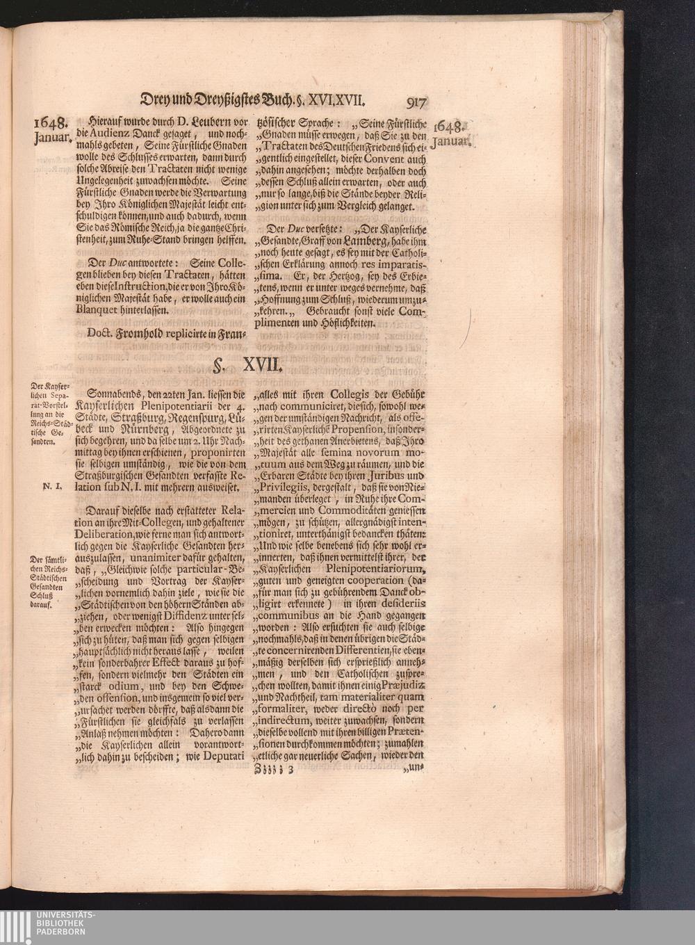 Vierdter Theil (1735) Worinnen enthalten, was vom Anfang des Jahrs 1647. biß gegen Ende desselben zwischen Jhro Römisch-Kayserlichen Majestät, dann den Beyden Cronen Franckreich und Schweden, ingleichen des Heiligen Römischen Reichs Chur-Fürsten, Fürsten und Ständen, zu Oßnabrück und Münster gehandelt worden