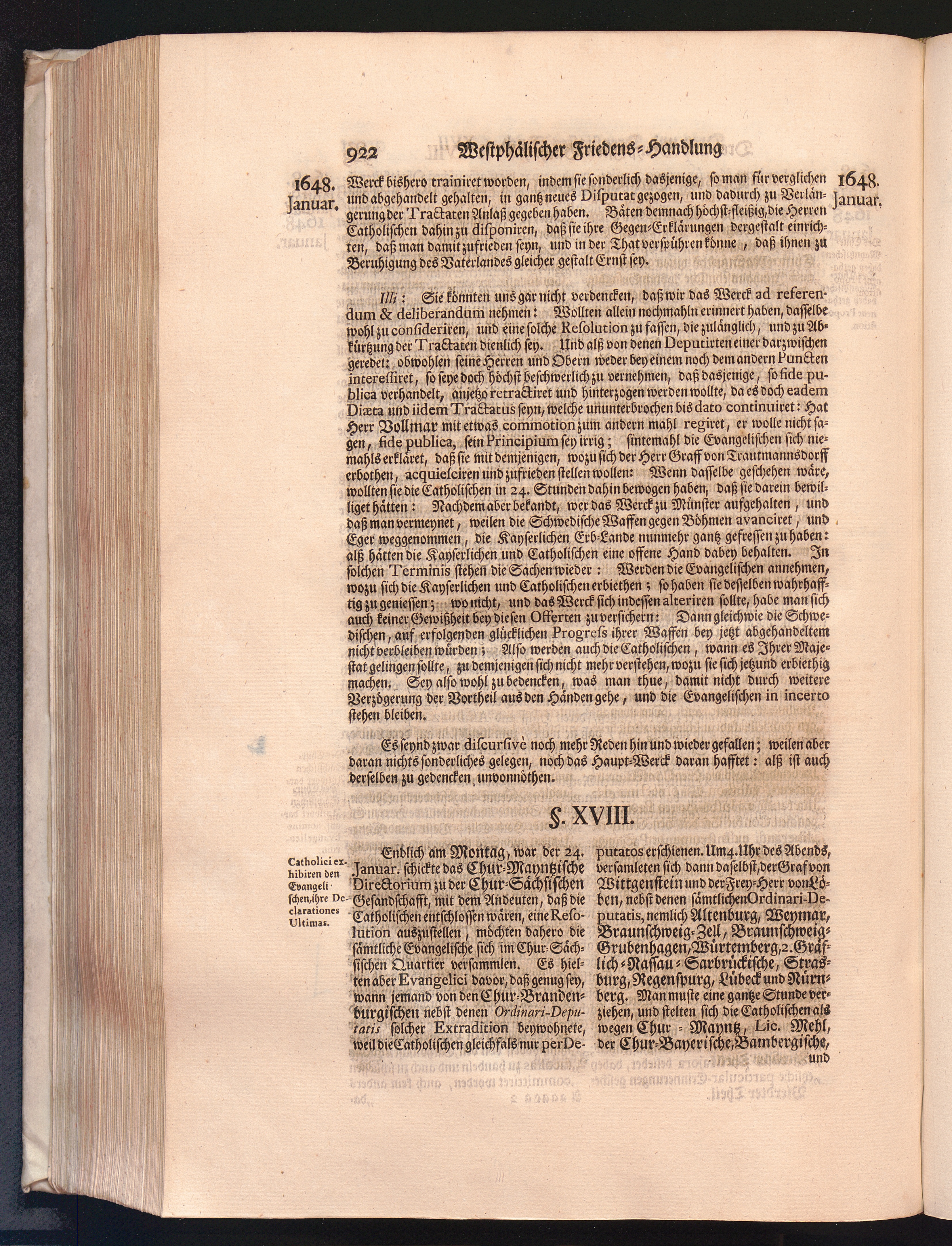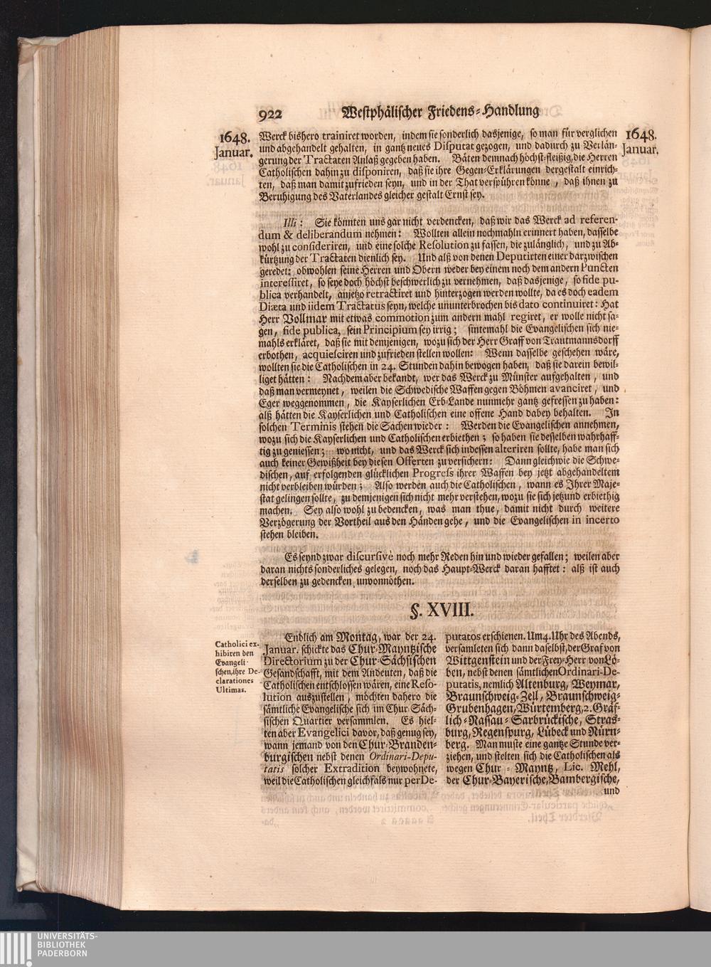 Vierdter Theil (1735) Worinnen enthalten, was vom Anfang des Jahrs 1647. biß gegen Ende desselben zwischen Jhro Römisch-Kayserlichen Majestät, dann den Beyden Cronen Franckreich und Schweden, ingleichen des Heiligen Römischen Reichs Chur-Fürsten, Fürsten und Ständen, zu Oßnabrück und Münster gehandelt worden