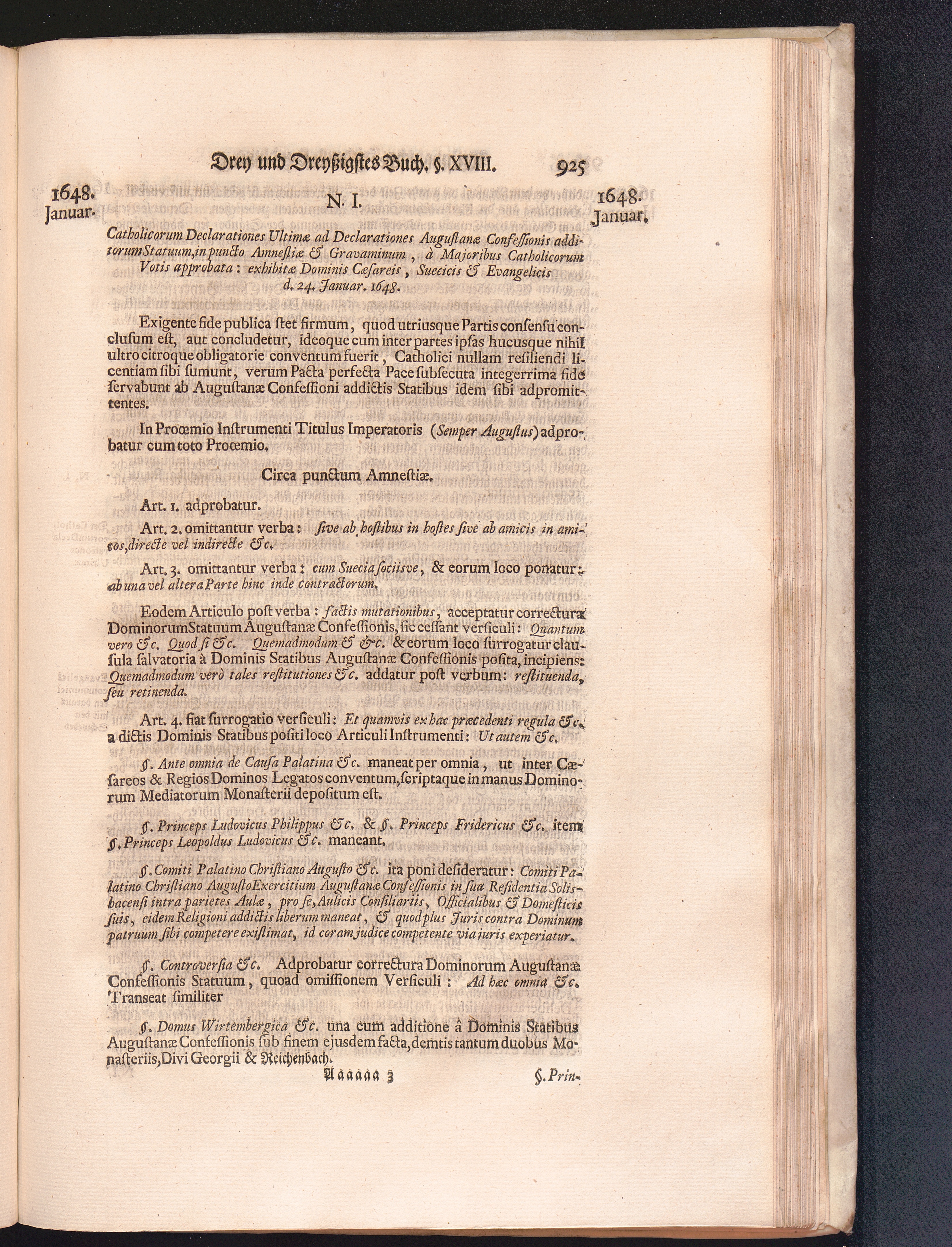 Vierdter Theil (1735) Worinnen enthalten, was vom Anfang des Jahrs 1647. biß gegen Ende desselben zwischen Jhro Römisch-Kayserlichen Majestät, dann den Beyden Cronen Franckreich und Schweden, ingleichen des Heiligen Römischen Reichs Chur-Fürsten, Fürsten und Ständen, zu Oßnabrück und Münster gehandelt worden