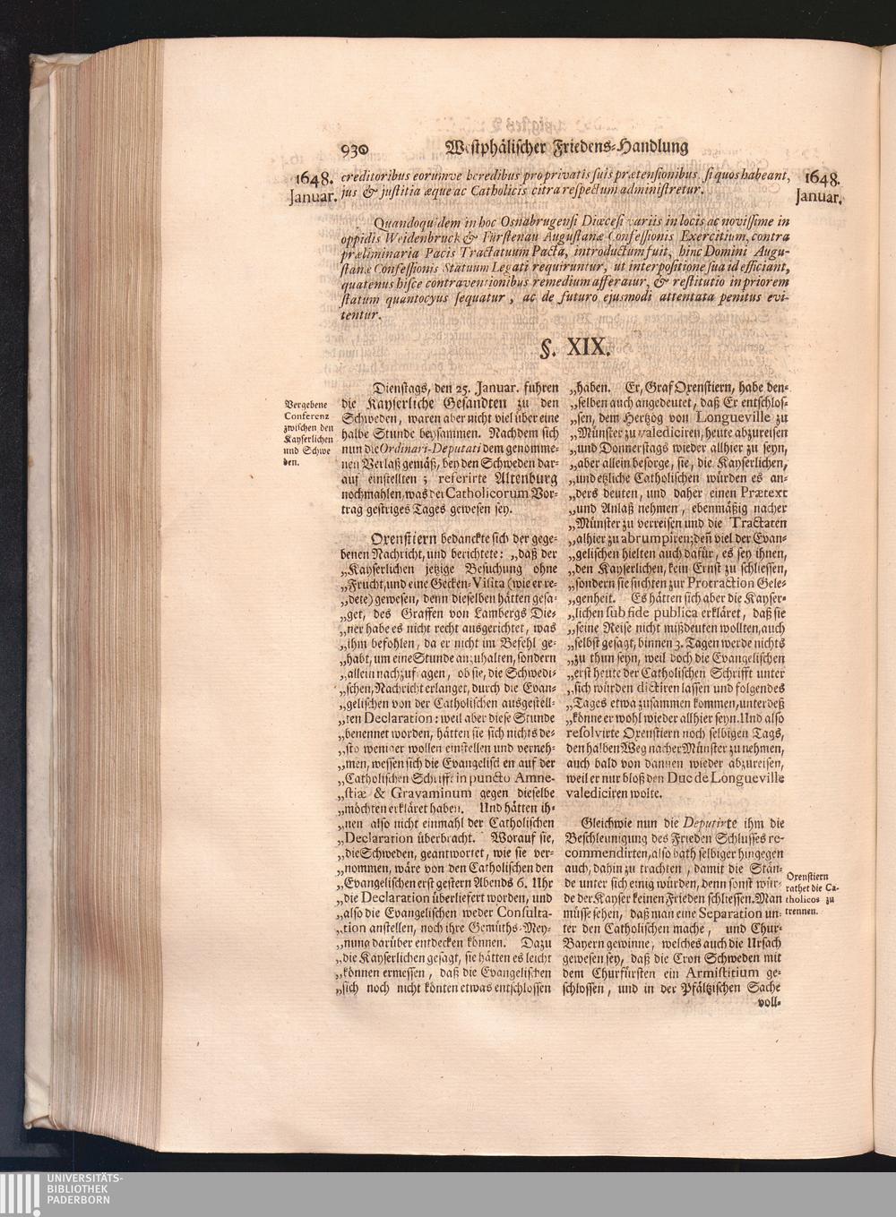 Vierdter Theil (1735) Worinnen enthalten, was vom Anfang des Jahrs 1647. biß gegen Ende desselben zwischen Jhro Römisch-Kayserlichen Majestät, dann den Beyden Cronen Franckreich und Schweden, ingleichen des Heiligen Römischen Reichs Chur-Fürsten, Fürsten und Ständen, zu Oßnabrück und Münster gehandelt worden