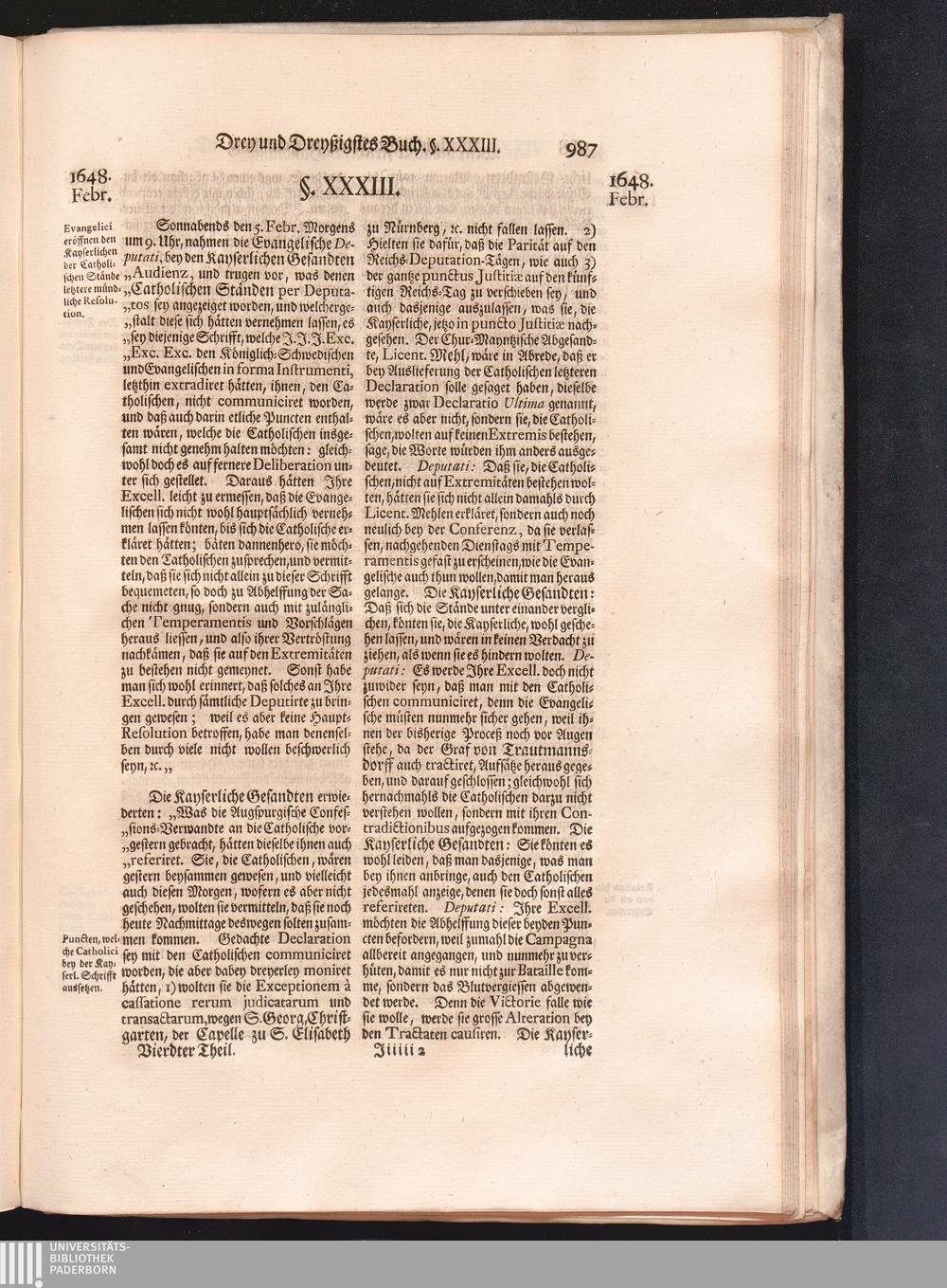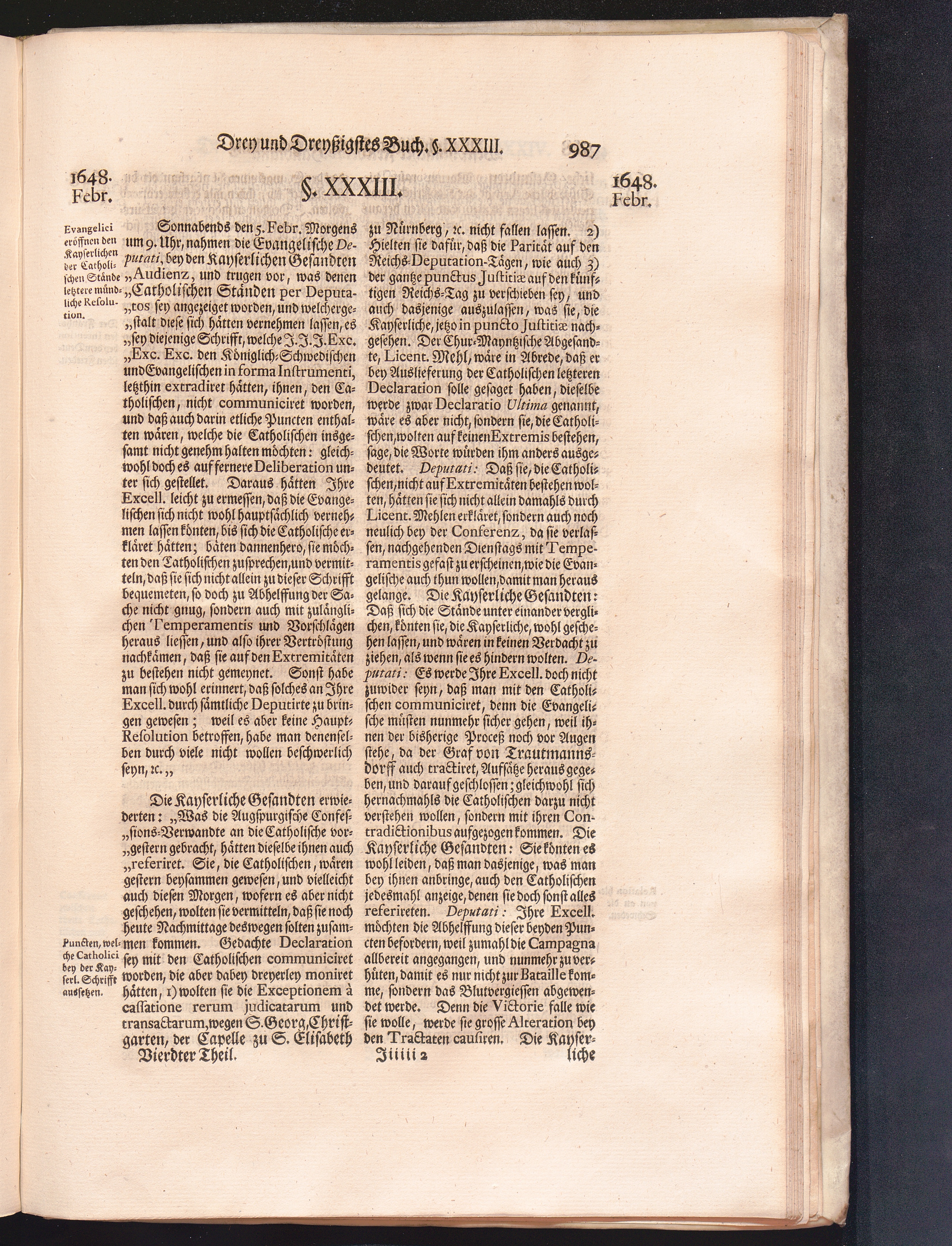 Vierdter Theil (1735) Worinnen enthalten, was vom Anfang des Jahrs 1647. biß gegen Ende desselben zwischen Jhro Römisch-Kayserlichen Majestät, dann den Beyden Cronen Franckreich und Schweden, ingleichen des Heiligen Römischen Reichs Chur-Fürsten, Fürsten und Ständen, zu Oßnabrück und Münster gehandelt worden
