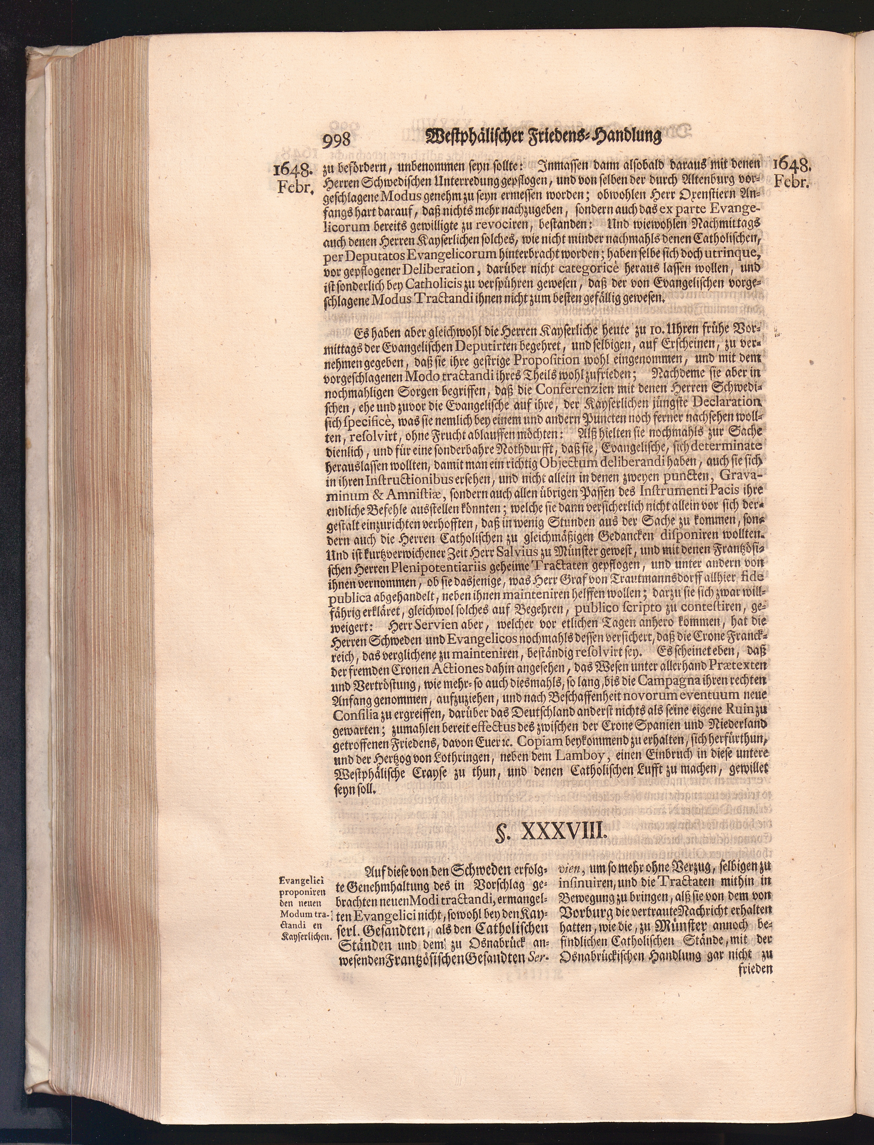 Vierdter Theil (1735) Worinnen enthalten, was vom Anfang des Jahrs 1647. biß gegen Ende desselben zwischen Jhro Römisch-Kayserlichen Majestät, dann den Beyden Cronen Franckreich und Schweden, ingleichen des Heiligen Römischen Reichs Chur-Fürsten, Fürsten und Ständen, zu Oßnabrück und Münster gehandelt worden