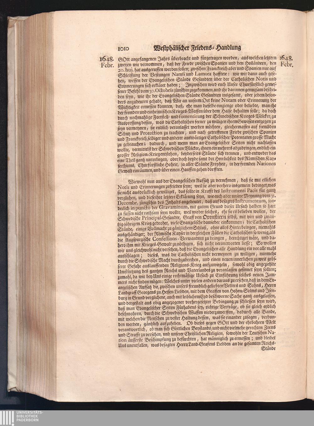 Vierdter Theil (1735) Worinnen enthalten, was vom Anfang des Jahrs 1647. biß gegen Ende desselben zwischen Jhro Römisch-Kayserlichen Majestät, dann den Beyden Cronen Franckreich und Schweden, ingleichen des Heiligen Römischen Reichs Chur-Fürsten, Fürsten und Ständen, zu Oßnabrück und Münster gehandelt worden