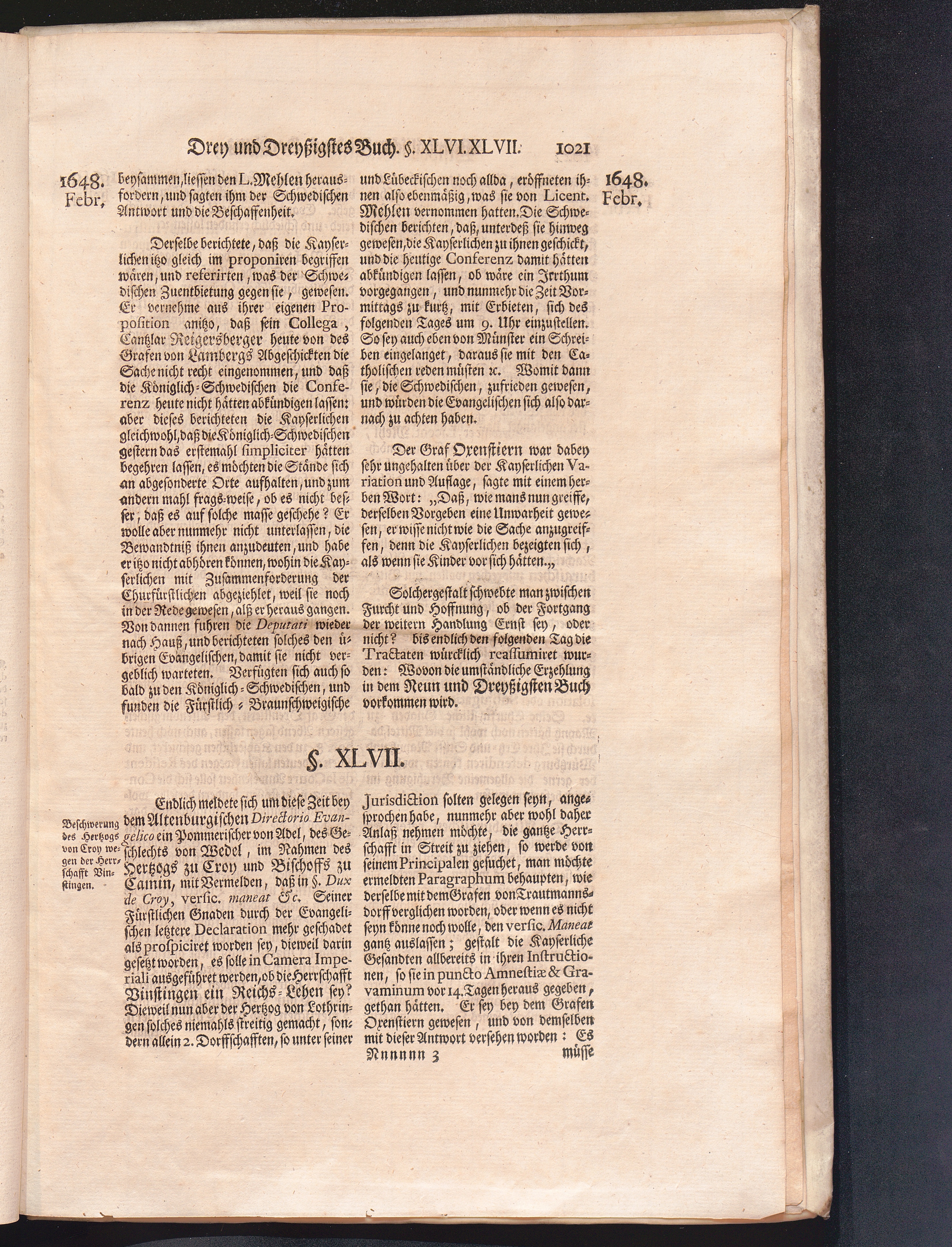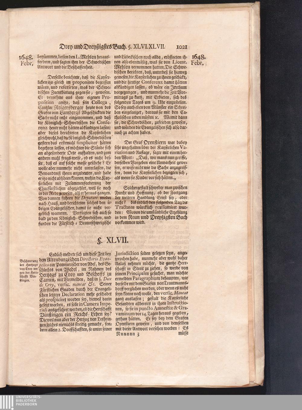 Vierdter Theil (1735) Worinnen enthalten, was vom Anfang des Jahrs 1647. biß gegen Ende desselben zwischen Jhro Römisch-Kayserlichen Majestät, dann den Beyden Cronen Franckreich und Schweden, ingleichen des Heiligen Römischen Reichs Chur-Fürsten, Fürsten und Ständen, zu Oßnabrück und Münster gehandelt worden