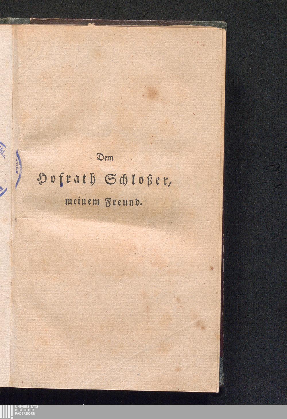 Dem Hofrath Schloßer, meinem Freund.