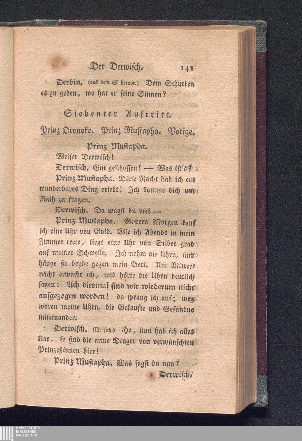 Der Derwisch. Ein Lustspiel in fünf Aufzügen; von 1779.