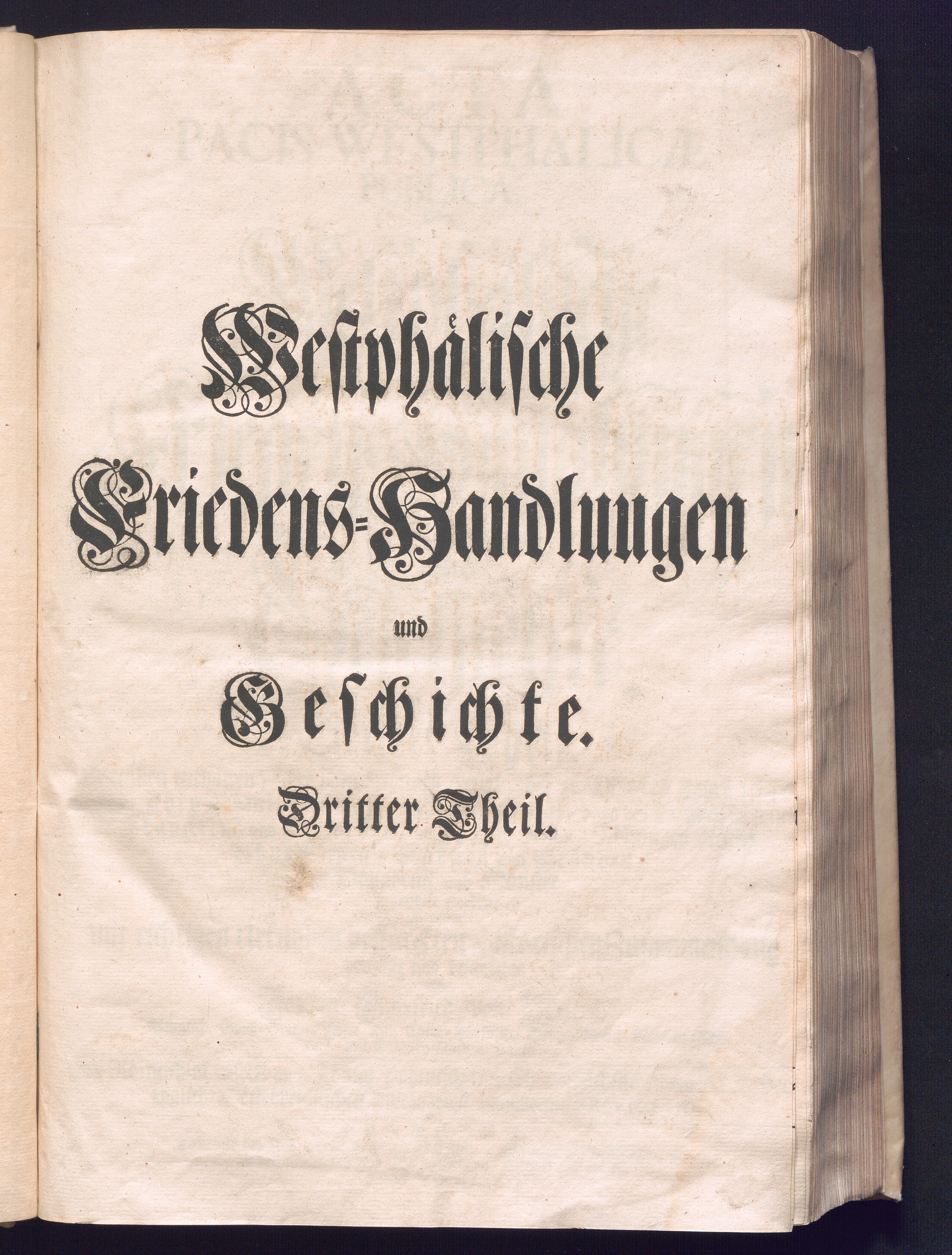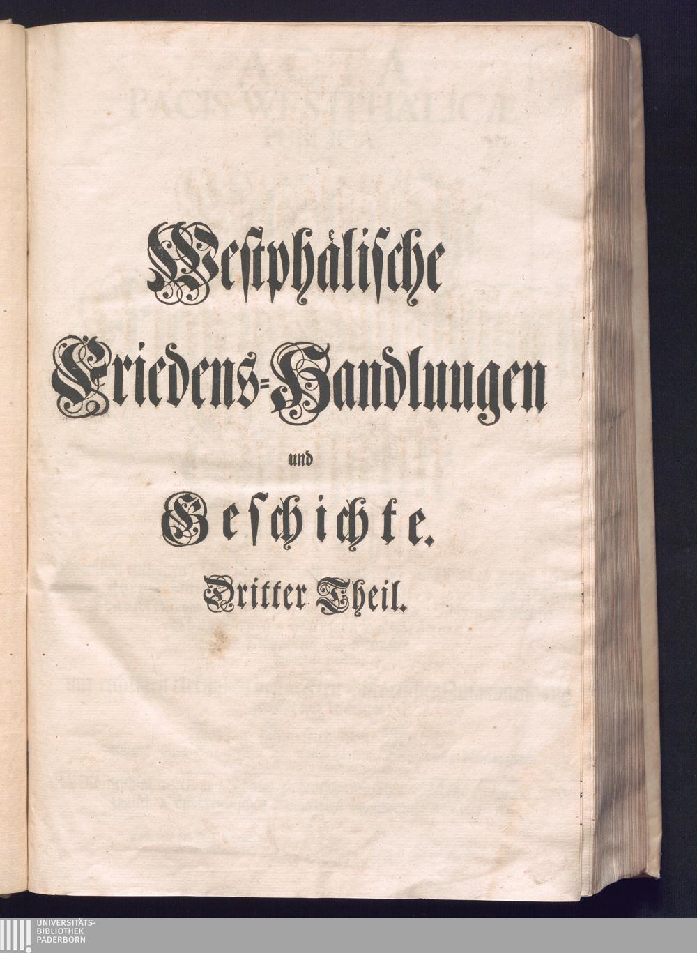 Dritter Theil (1735) Worinnen enthalten, was vom Monath April, biß zu Ende des Jahrs 1646. zwischen Jhro Römisch-Kayserlichen Majestät, dann den Beyden Cronen Franckreich und Schweden, ingleichen des Heiligen Römischen Reichs Chur Fürsten, Fürsten und Ständen, zu Oßnabrück und Münster gehandelt worden