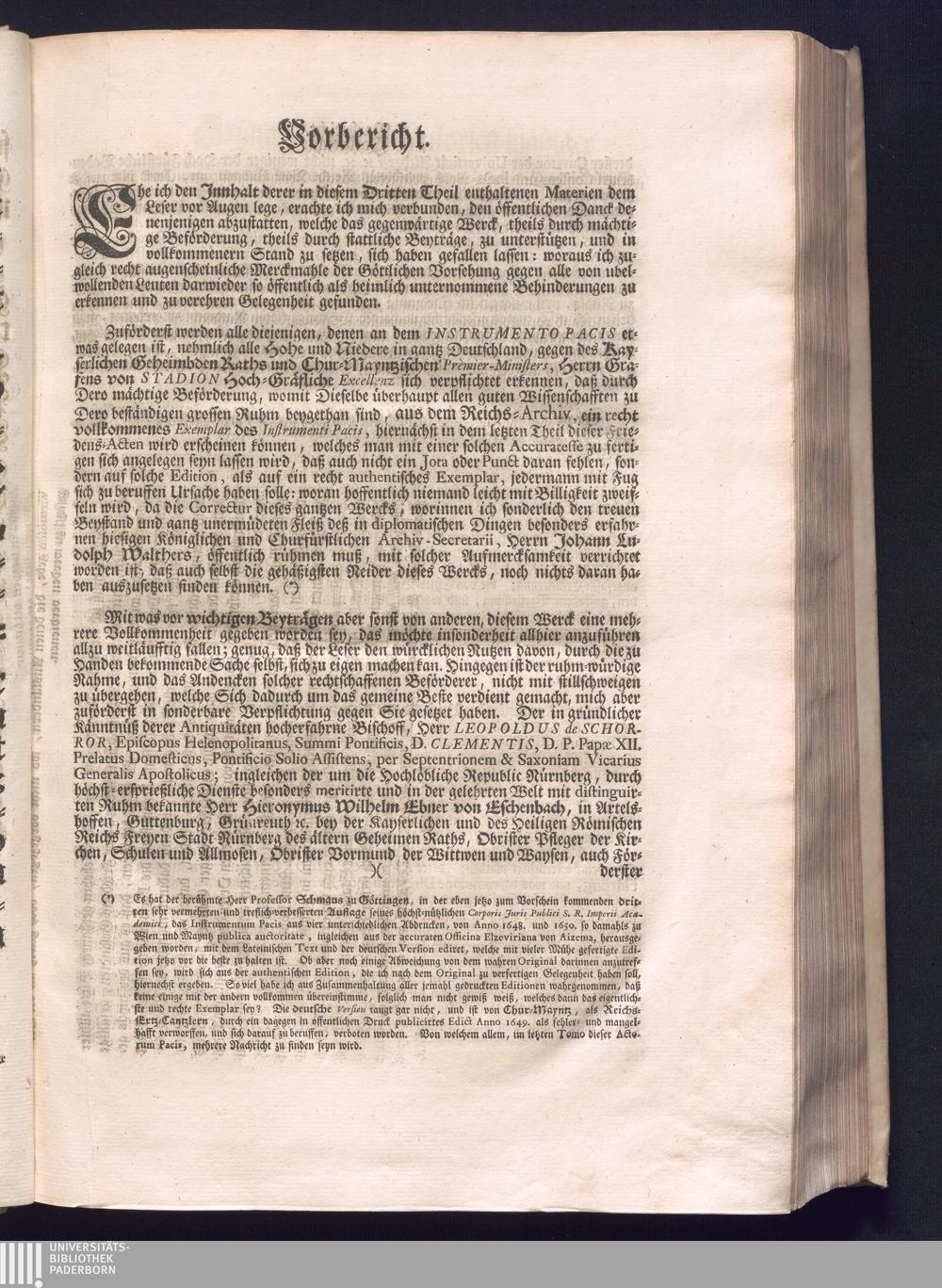 Dritter Theil (1735) Worinnen enthalten, was vom Monath April, biß zu Ende des Jahrs 1646. zwischen Jhro Römisch-Kayserlichen Majestät, dann den Beyden Cronen Franckreich und Schweden, ingleichen des Heiligen Römischen Reichs Chur Fürsten, Fürsten und Ständen, zu Oßnabrück und Münster gehandelt worden