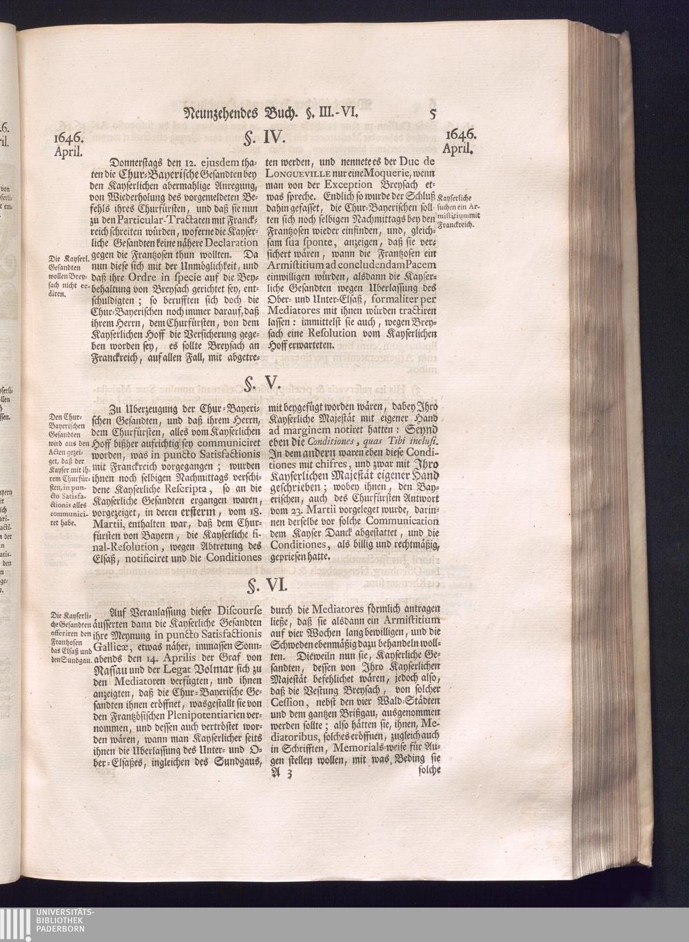 Dritter Theil (1735) Worinnen enthalten, was vom Monath April, biß zu Ende des Jahrs 1646. zwischen Jhro Römisch-Kayserlichen Majestät, dann den Beyden Cronen Franckreich und Schweden, ingleichen des Heiligen Römischen Reichs Chur Fürsten, Fürsten und Ständen, zu Oßnabrück und Münster gehandelt worden