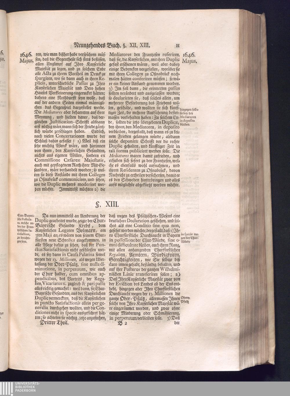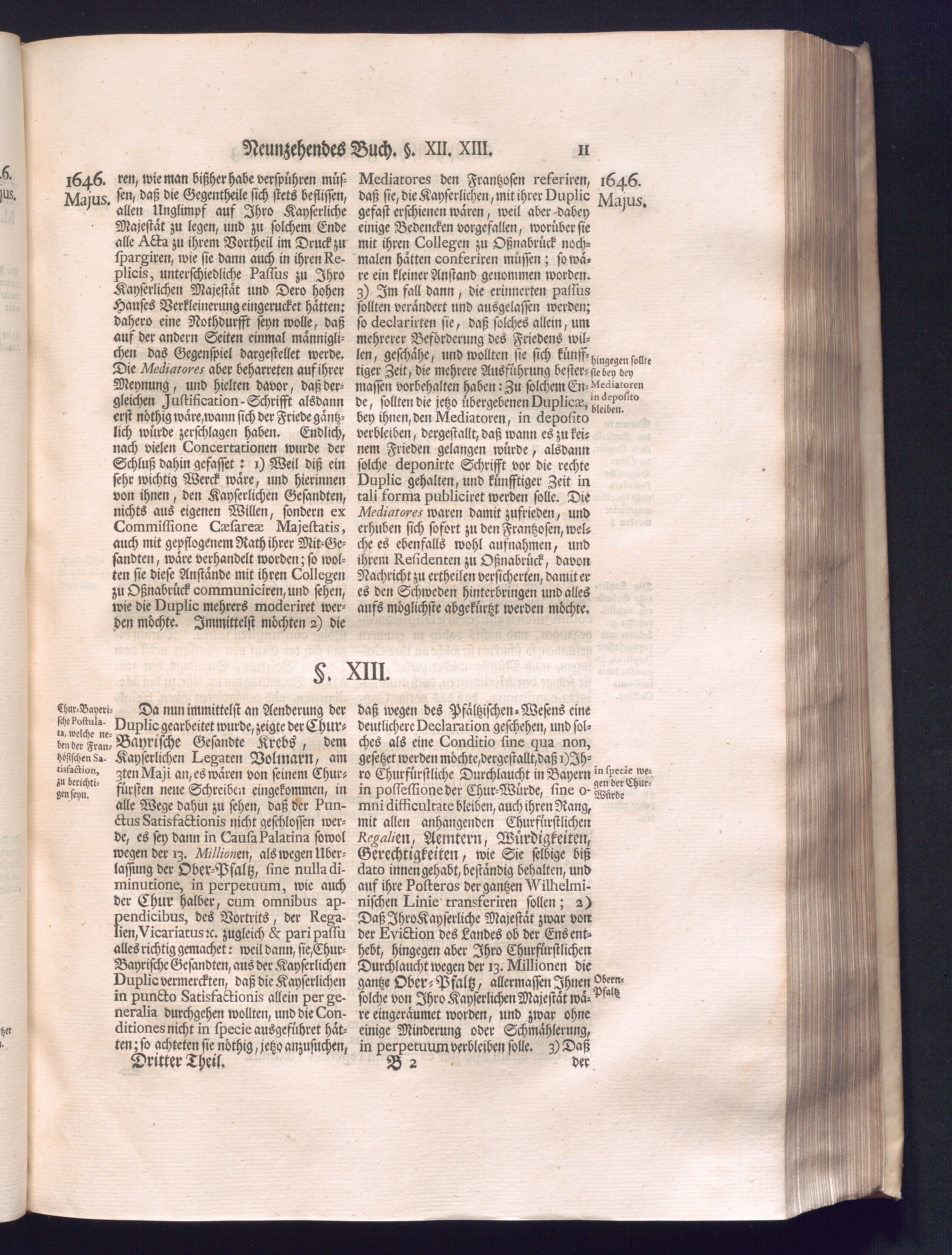 Dritter Theil (1735) Worinnen enthalten, was vom Monath April, biß zu Ende des Jahrs 1646. zwischen Jhro Römisch-Kayserlichen Majestät, dann den Beyden Cronen Franckreich und Schweden, ingleichen des Heiligen Römischen Reichs Chur Fürsten, Fürsten und Ständen, zu Oßnabrück und Münster gehandelt worden