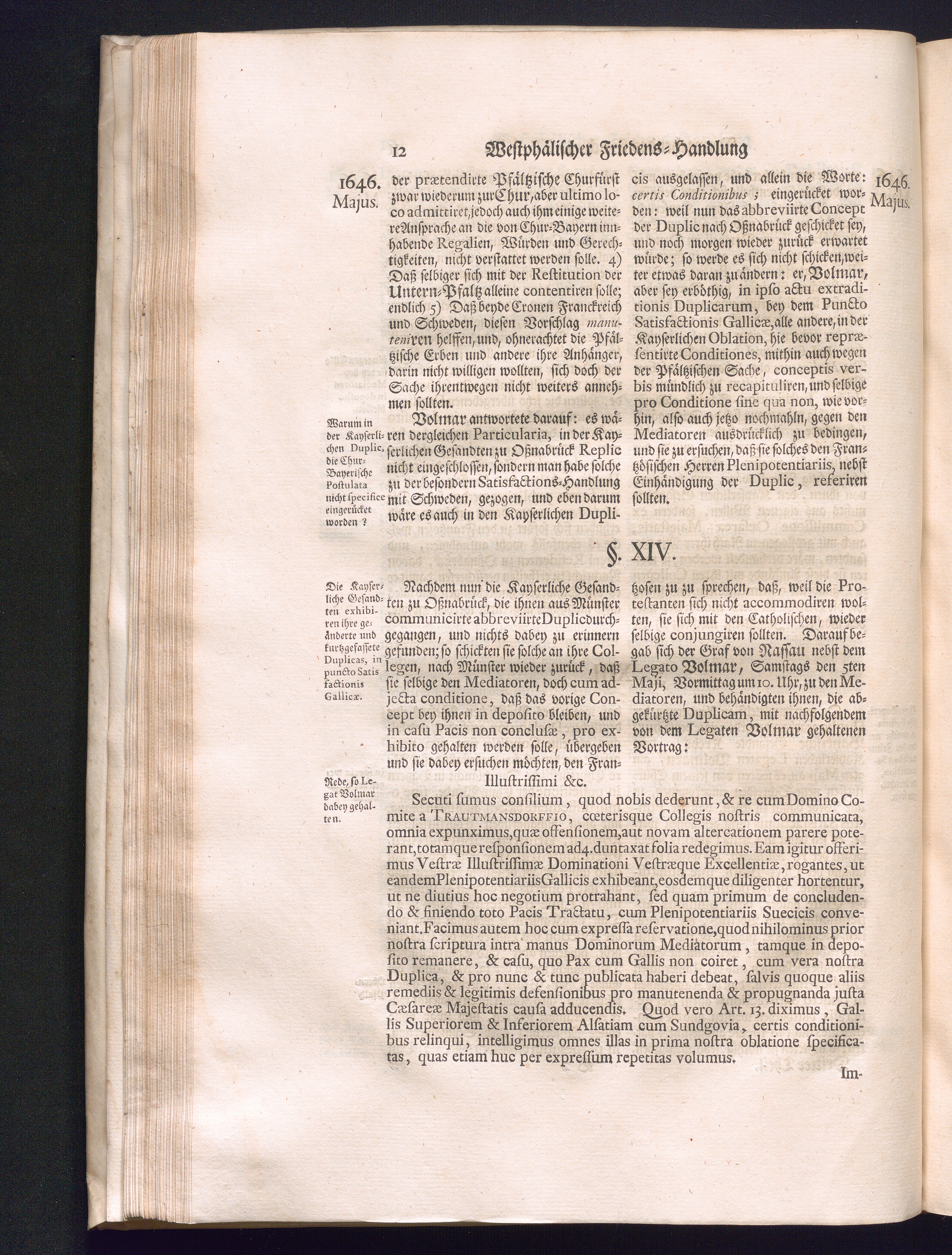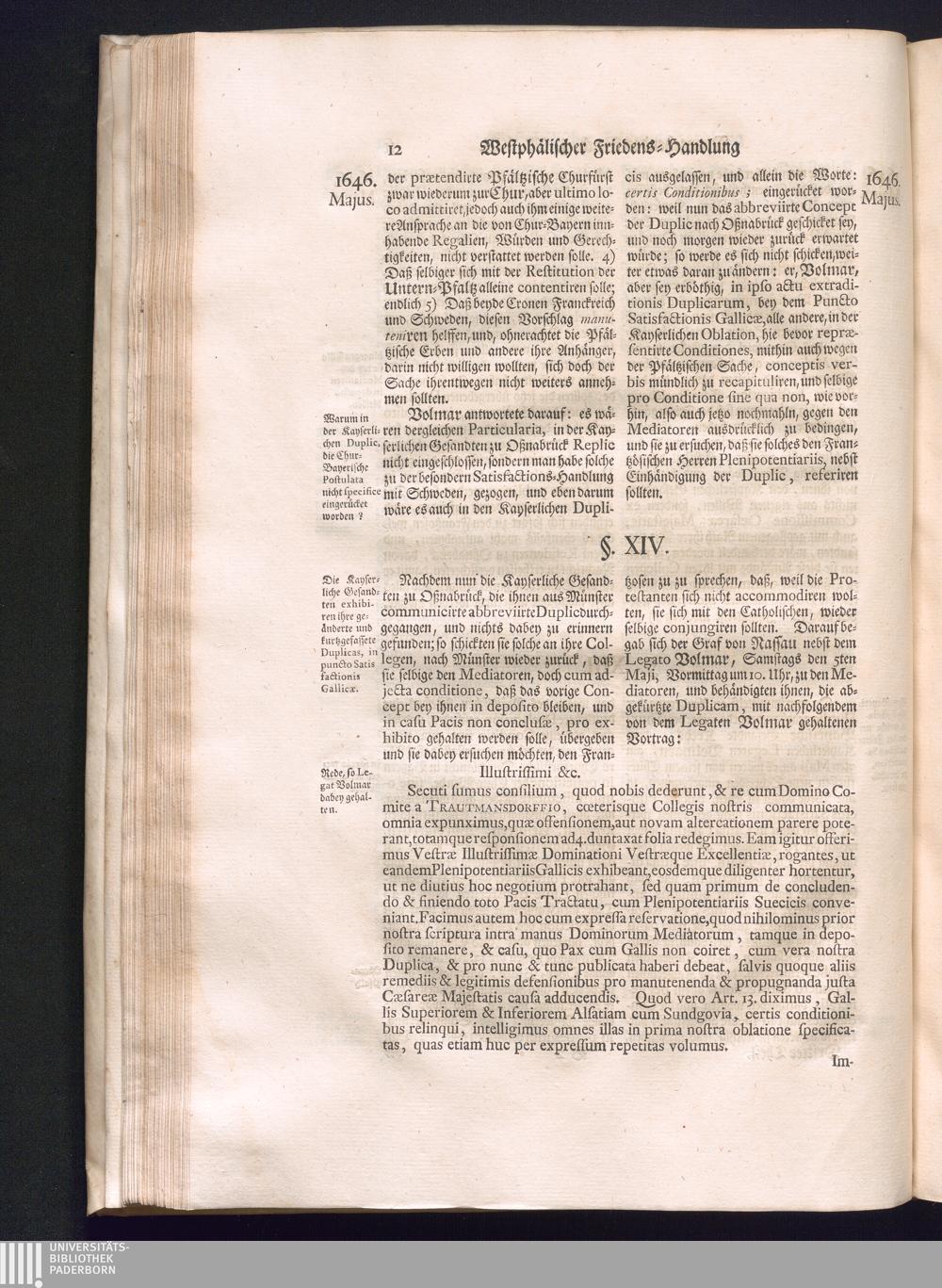 Dritter Theil (1735) Worinnen enthalten, was vom Monath April, biß zu Ende des Jahrs 1646. zwischen Jhro Römisch-Kayserlichen Majestät, dann den Beyden Cronen Franckreich und Schweden, ingleichen des Heiligen Römischen Reichs Chur Fürsten, Fürsten und Ständen, zu Oßnabrück und Münster gehandelt worden