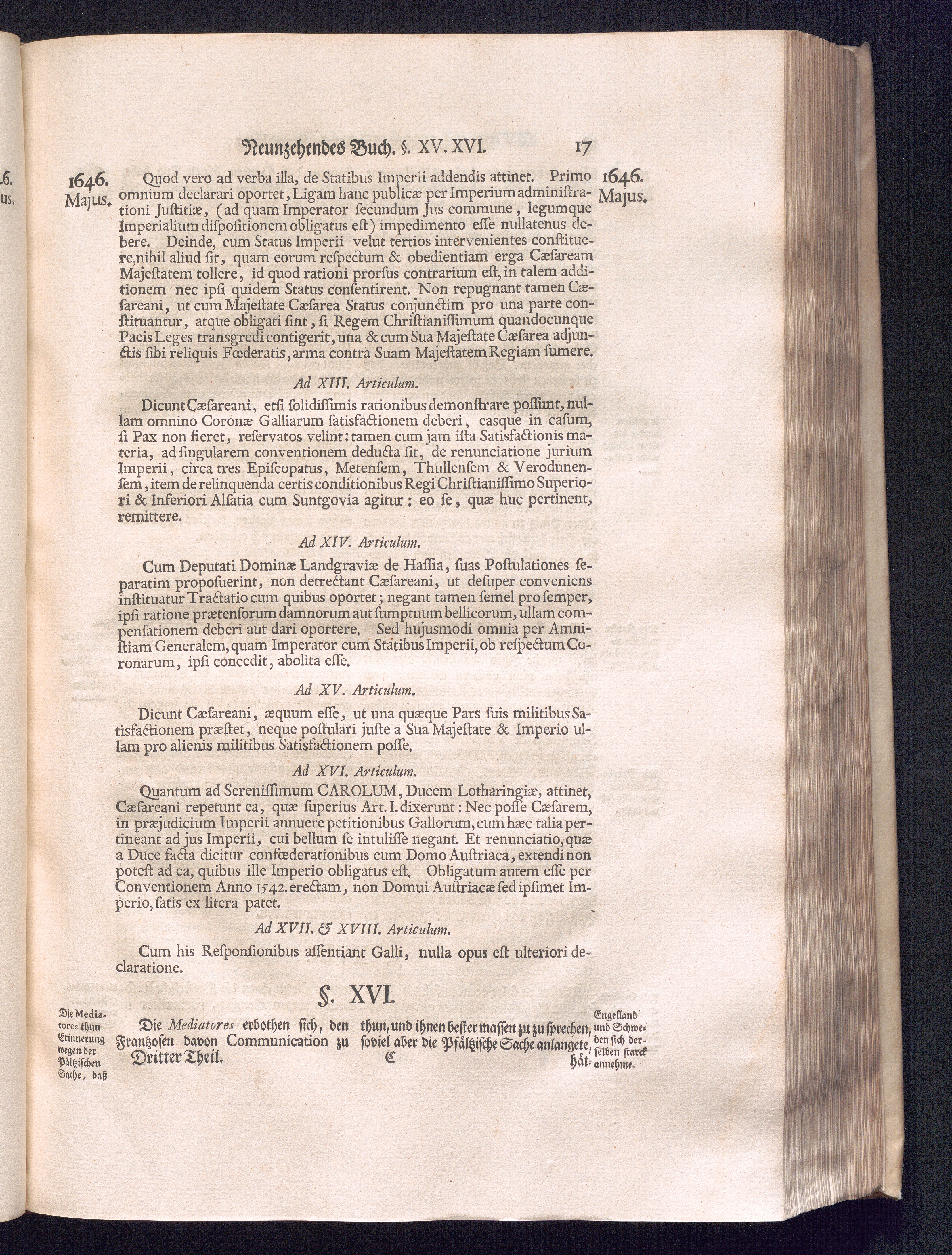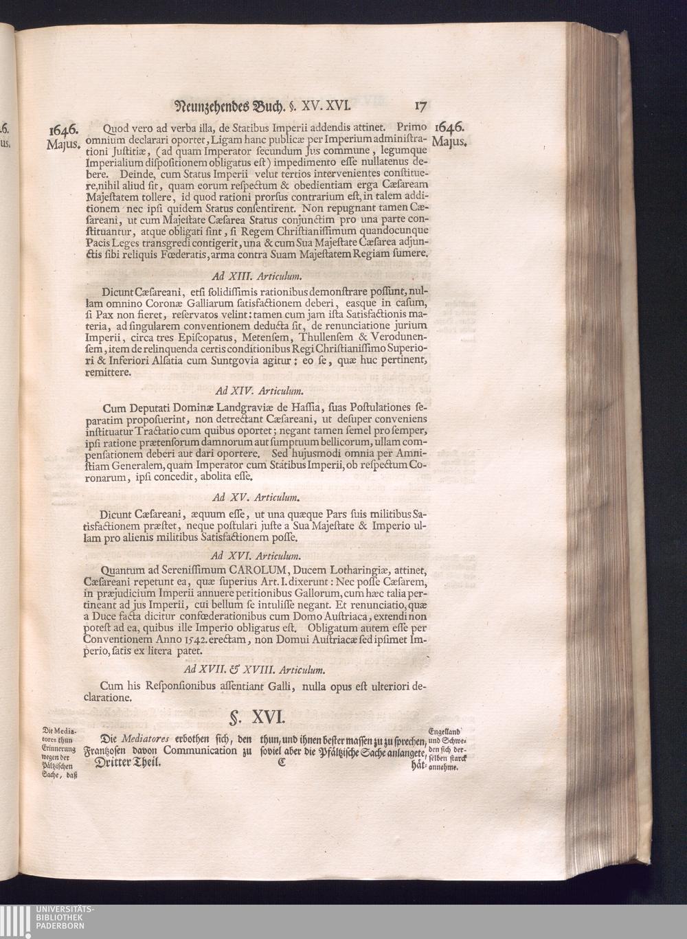 Dritter Theil (1735) Worinnen enthalten, was vom Monath April, biß zu Ende des Jahrs 1646. zwischen Jhro Römisch-Kayserlichen Majestät, dann den Beyden Cronen Franckreich und Schweden, ingleichen des Heiligen Römischen Reichs Chur Fürsten, Fürsten und Ständen, zu Oßnabrück und Münster gehandelt worden