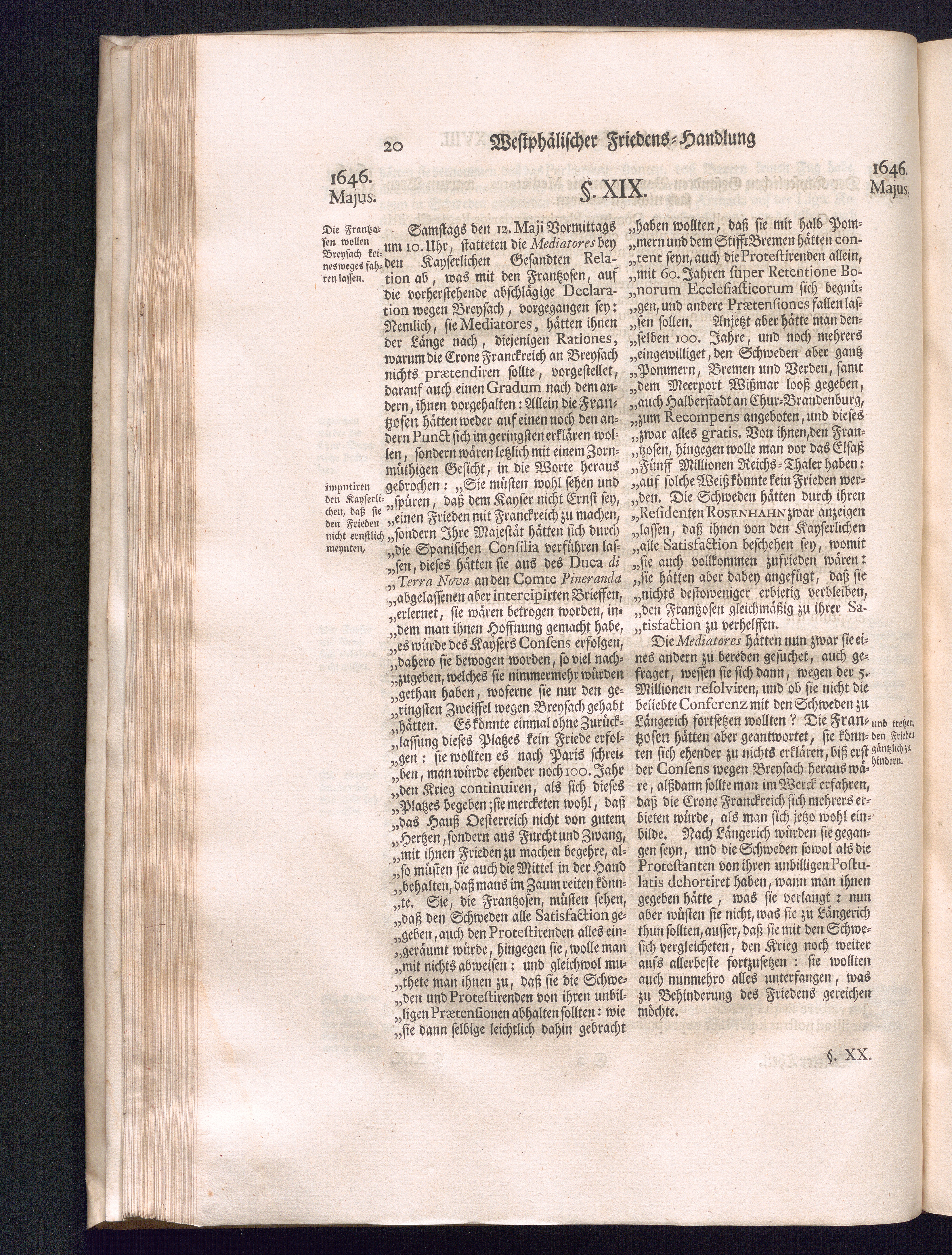 Dritter Theil (1735) Worinnen enthalten, was vom Monath April, biß zu Ende des Jahrs 1646. zwischen Jhro Römisch-Kayserlichen Majestät, dann den Beyden Cronen Franckreich und Schweden, ingleichen des Heiligen Römischen Reichs Chur Fürsten, Fürsten und Ständen, zu Oßnabrück und Münster gehandelt worden