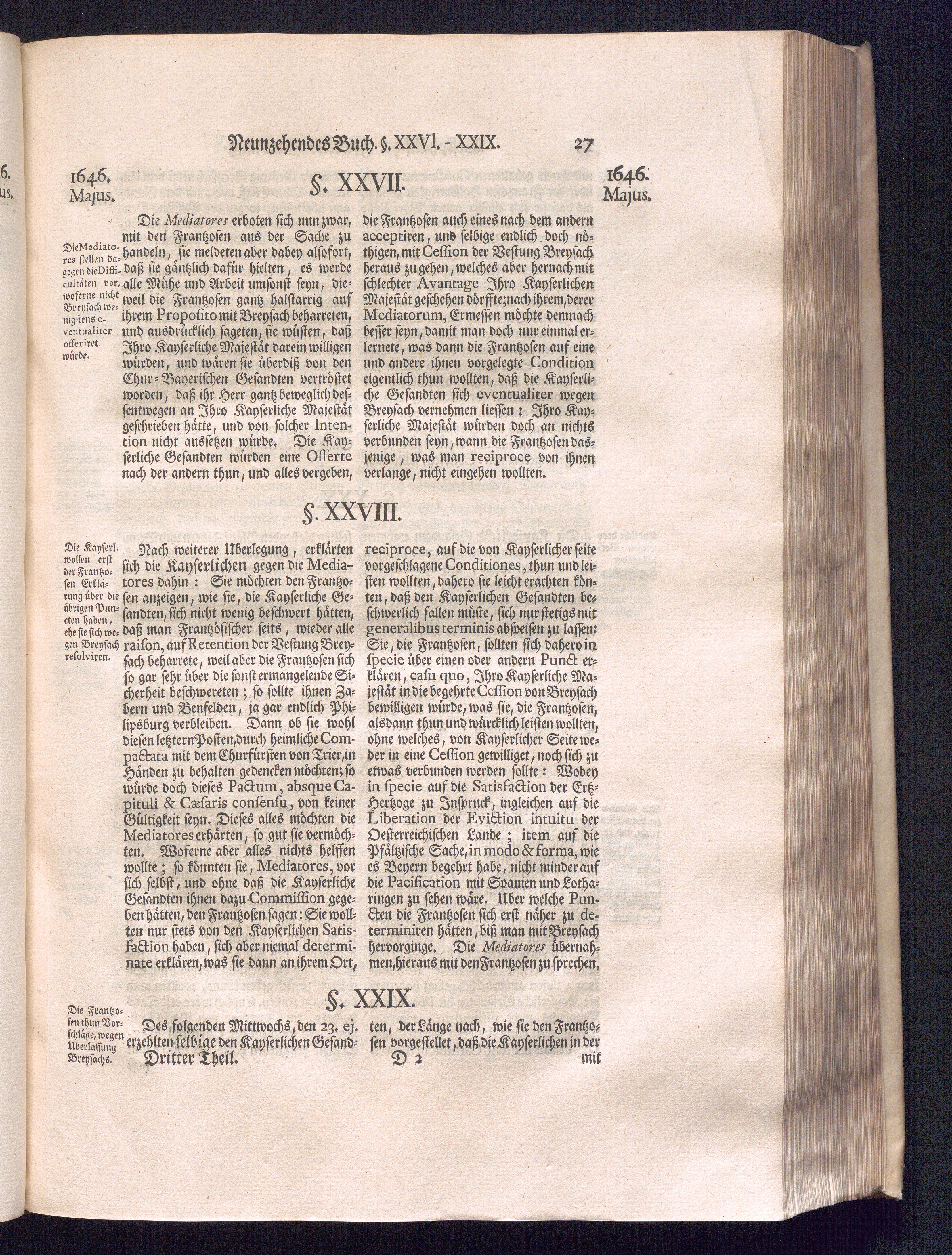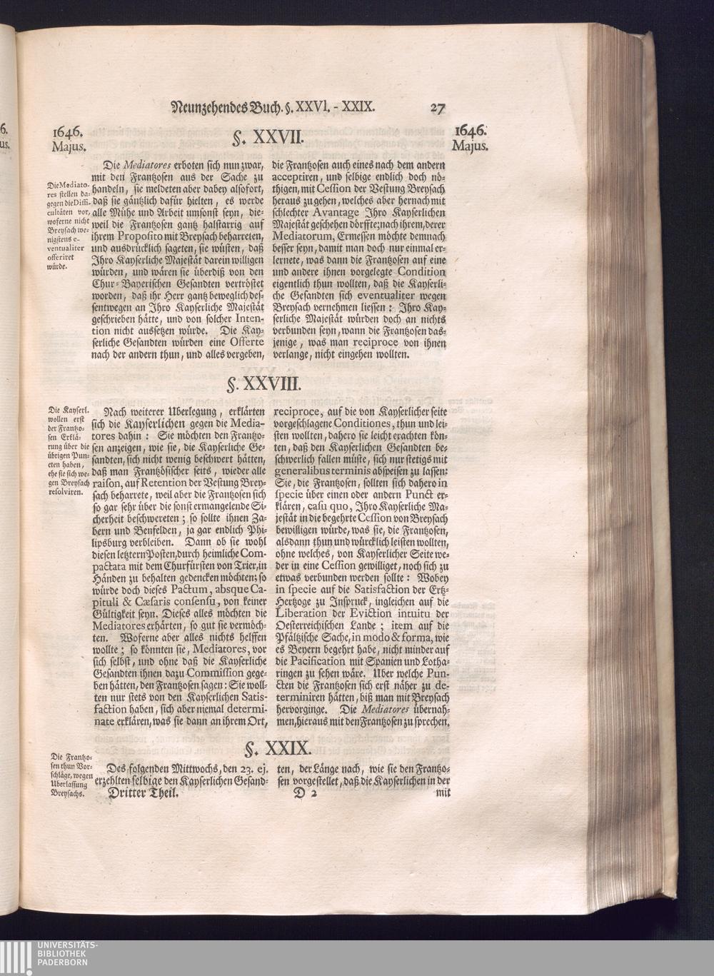 Dritter Theil (1735) Worinnen enthalten, was vom Monath April, biß zu Ende des Jahrs 1646. zwischen Jhro Römisch-Kayserlichen Majestät, dann den Beyden Cronen Franckreich und Schweden, ingleichen des Heiligen Römischen Reichs Chur Fürsten, Fürsten und Ständen, zu Oßnabrück und Münster gehandelt worden
