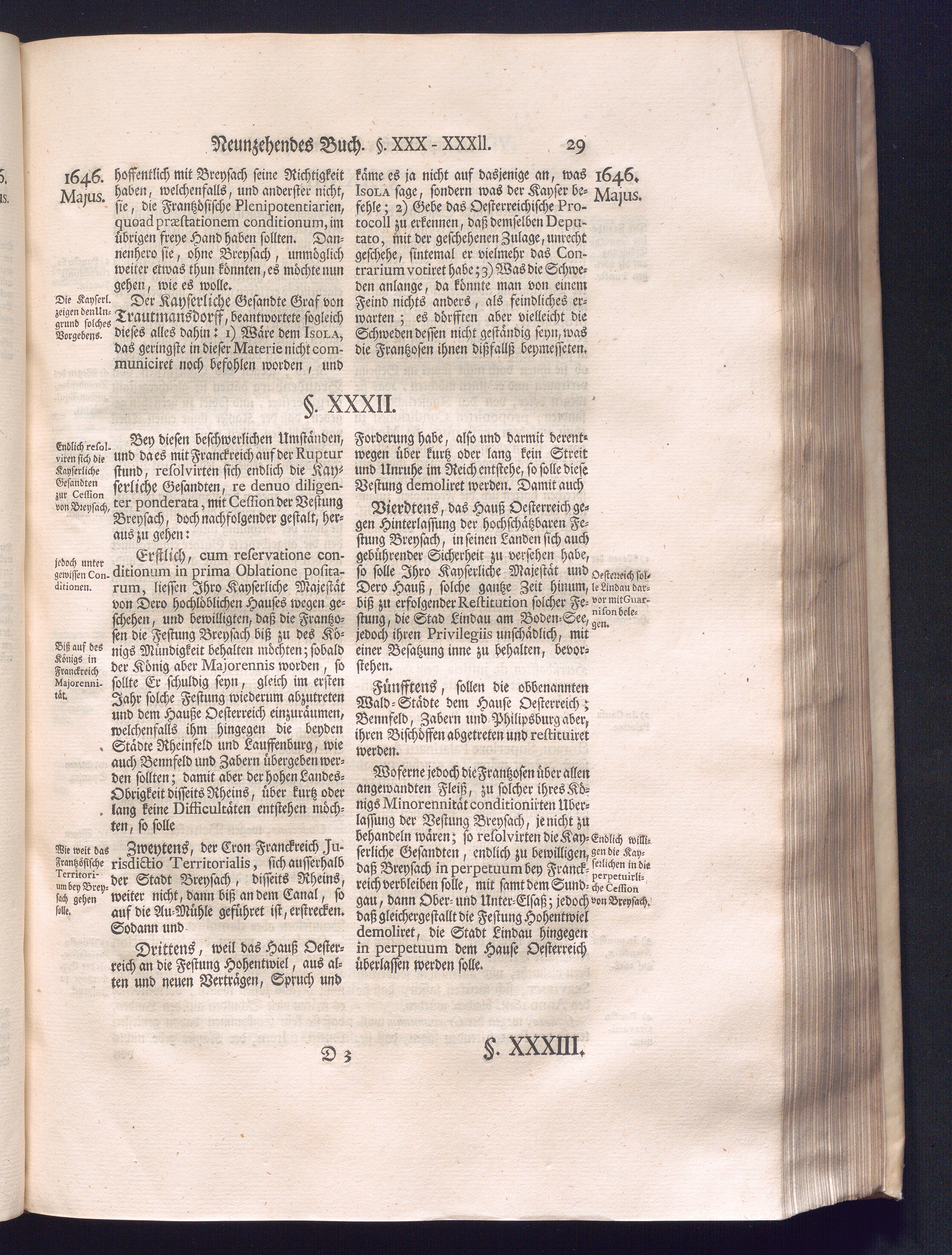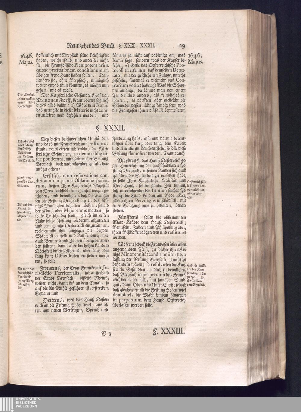 Dritter Theil (1735) Worinnen enthalten, was vom Monath April, biß zu Ende des Jahrs 1646. zwischen Jhro Römisch-Kayserlichen Majestät, dann den Beyden Cronen Franckreich und Schweden, ingleichen des Heiligen Römischen Reichs Chur Fürsten, Fürsten und Ständen, zu Oßnabrück und Münster gehandelt worden