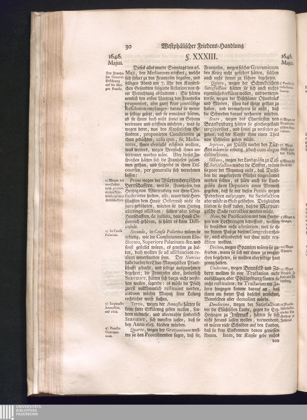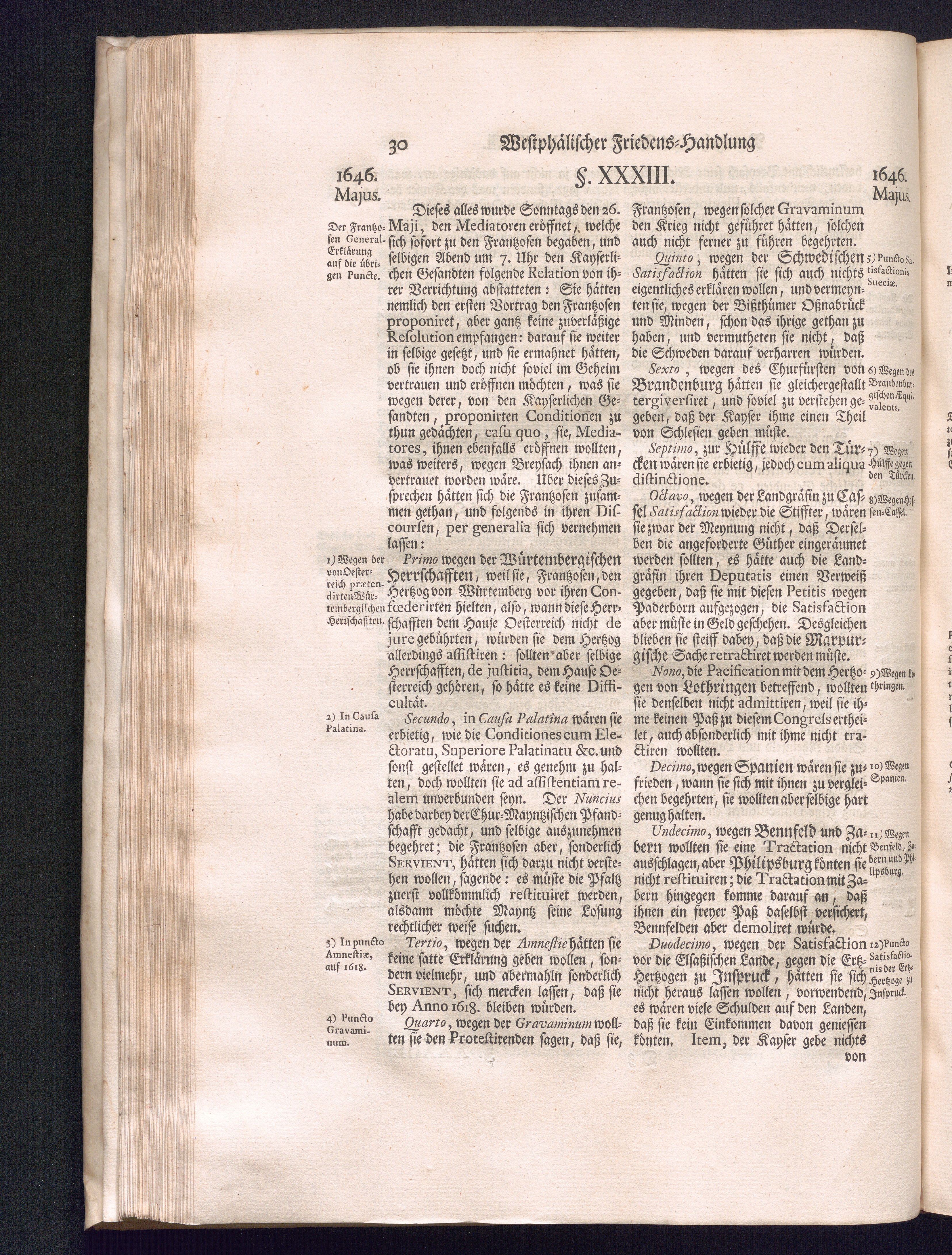 Dritter Theil (1735) Worinnen enthalten, was vom Monath April, biß zu Ende des Jahrs 1646. zwischen Jhro Römisch-Kayserlichen Majestät, dann den Beyden Cronen Franckreich und Schweden, ingleichen des Heiligen Römischen Reichs Chur Fürsten, Fürsten und Ständen, zu Oßnabrück und Münster gehandelt worden