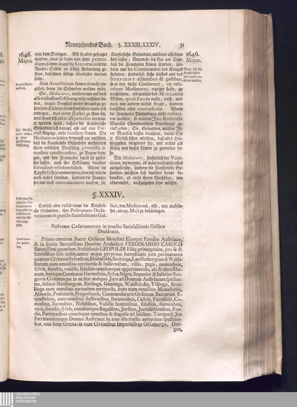 Dritter Theil (1735) Worinnen enthalten, was vom Monath April, biß zu Ende des Jahrs 1646. zwischen Jhro Römisch-Kayserlichen Majestät, dann den Beyden Cronen Franckreich und Schweden, ingleichen des Heiligen Römischen Reichs Chur Fürsten, Fürsten und Ständen, zu Oßnabrück und Münster gehandelt worden