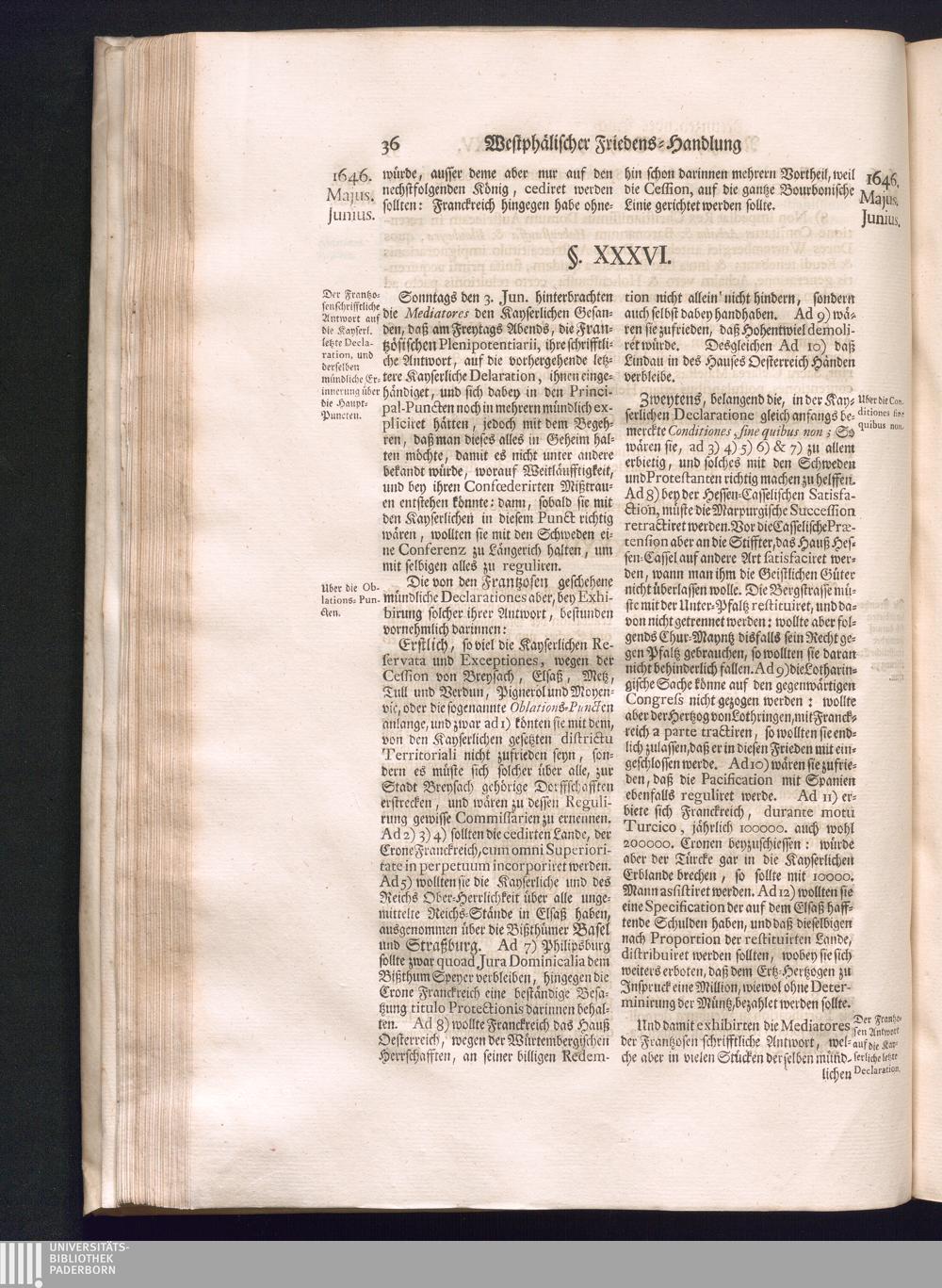 Dritter Theil (1735) Worinnen enthalten, was vom Monath April, biß zu Ende des Jahrs 1646. zwischen Jhro Römisch-Kayserlichen Majestät, dann den Beyden Cronen Franckreich und Schweden, ingleichen des Heiligen Römischen Reichs Chur Fürsten, Fürsten und Ständen, zu Oßnabrück und Münster gehandelt worden