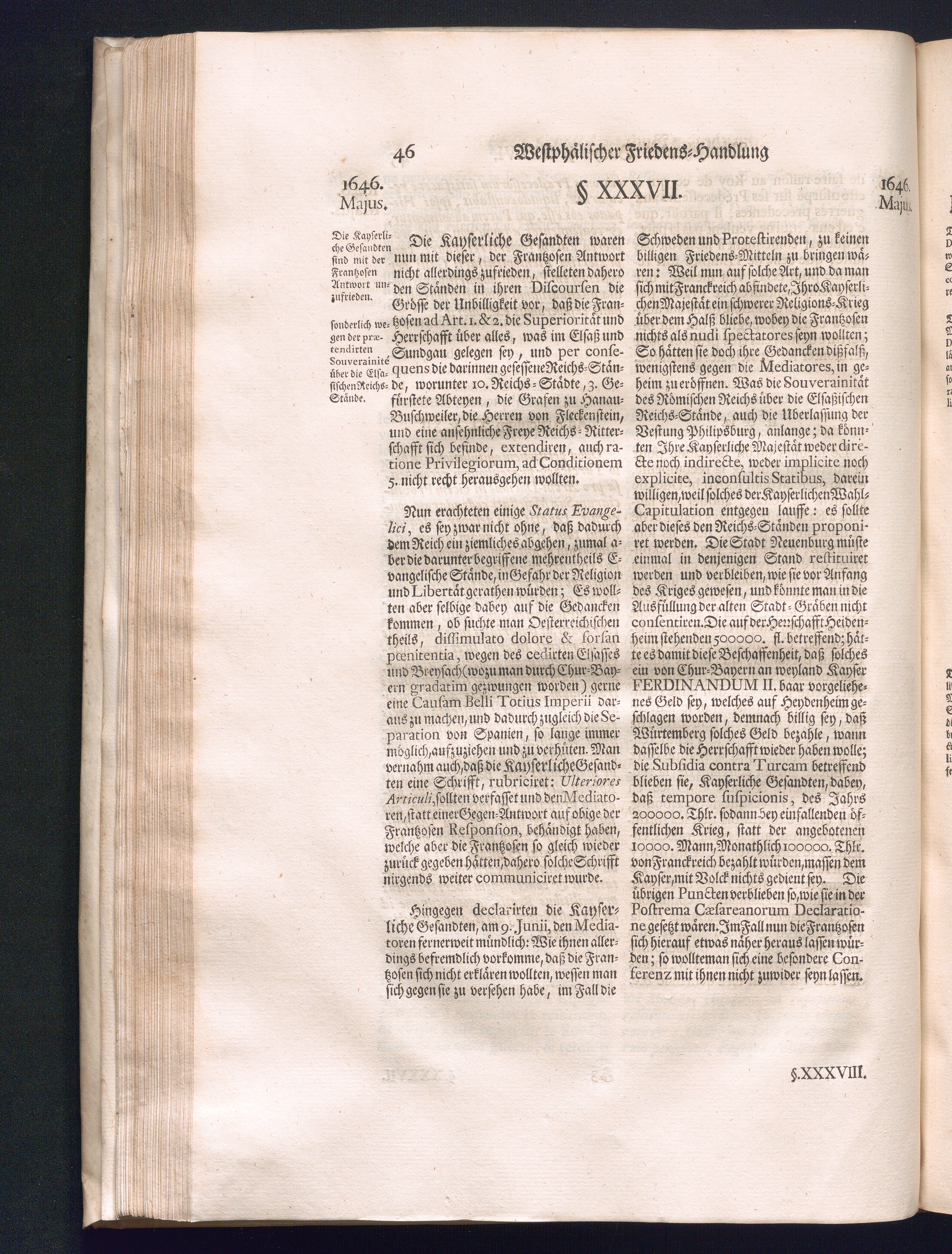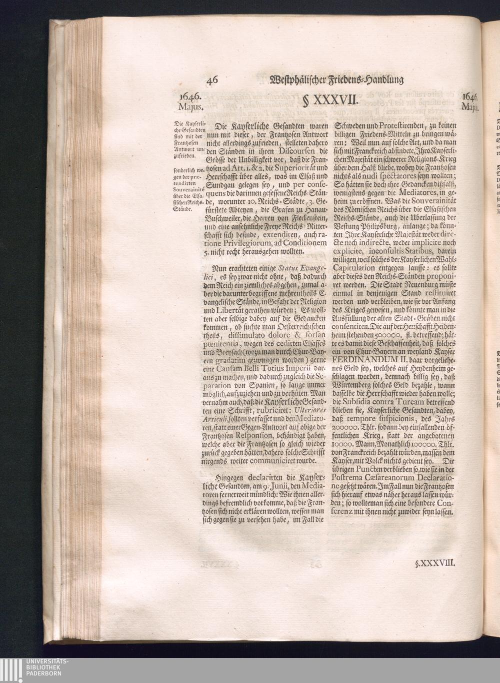 Dritter Theil (1735) Worinnen enthalten, was vom Monath April, biß zu Ende des Jahrs 1646. zwischen Jhro Römisch-Kayserlichen Majestät, dann den Beyden Cronen Franckreich und Schweden, ingleichen des Heiligen Römischen Reichs Chur Fürsten, Fürsten und Ständen, zu Oßnabrück und Münster gehandelt worden