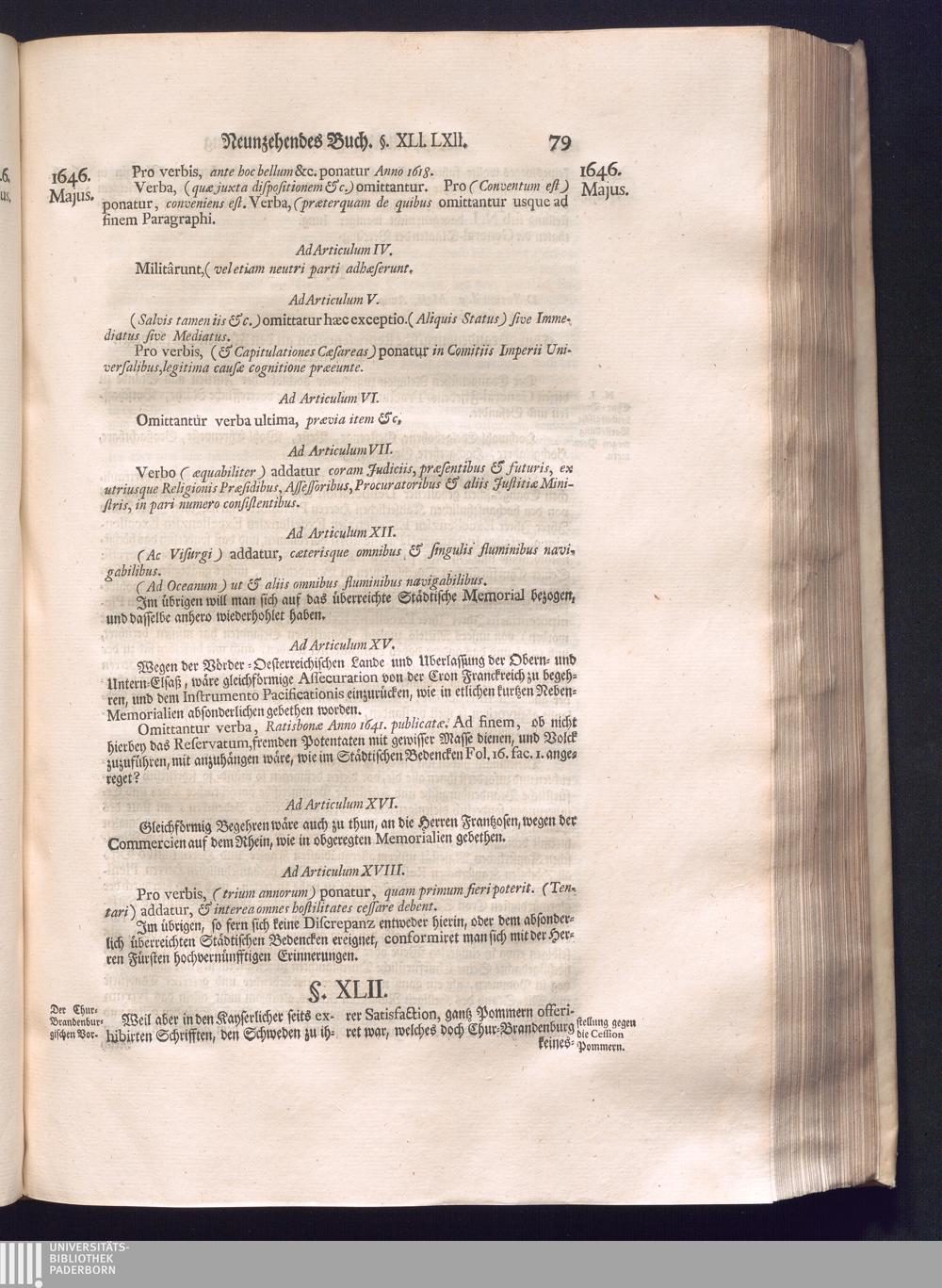 Dritter Theil (1735) Worinnen enthalten, was vom Monath April, biß zu Ende des Jahrs 1646. zwischen Jhro Römisch-Kayserlichen Majestät, dann den Beyden Cronen Franckreich und Schweden, ingleichen des Heiligen Römischen Reichs Chur Fürsten, Fürsten und Ständen, zu Oßnabrück und Münster gehandelt worden