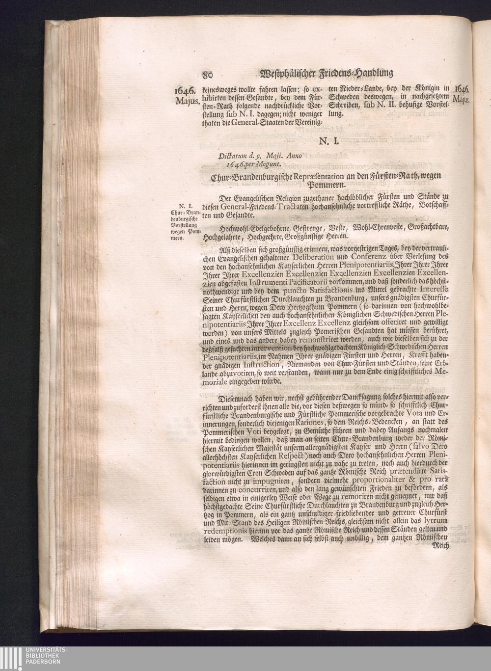 Dritter Theil (1735) Worinnen enthalten, was vom Monath April, biß zu Ende des Jahrs 1646. zwischen Jhro Römisch-Kayserlichen Majestät, dann den Beyden Cronen Franckreich und Schweden, ingleichen des Heiligen Römischen Reichs Chur Fürsten, Fürsten und Ständen, zu Oßnabrück und Münster gehandelt worden