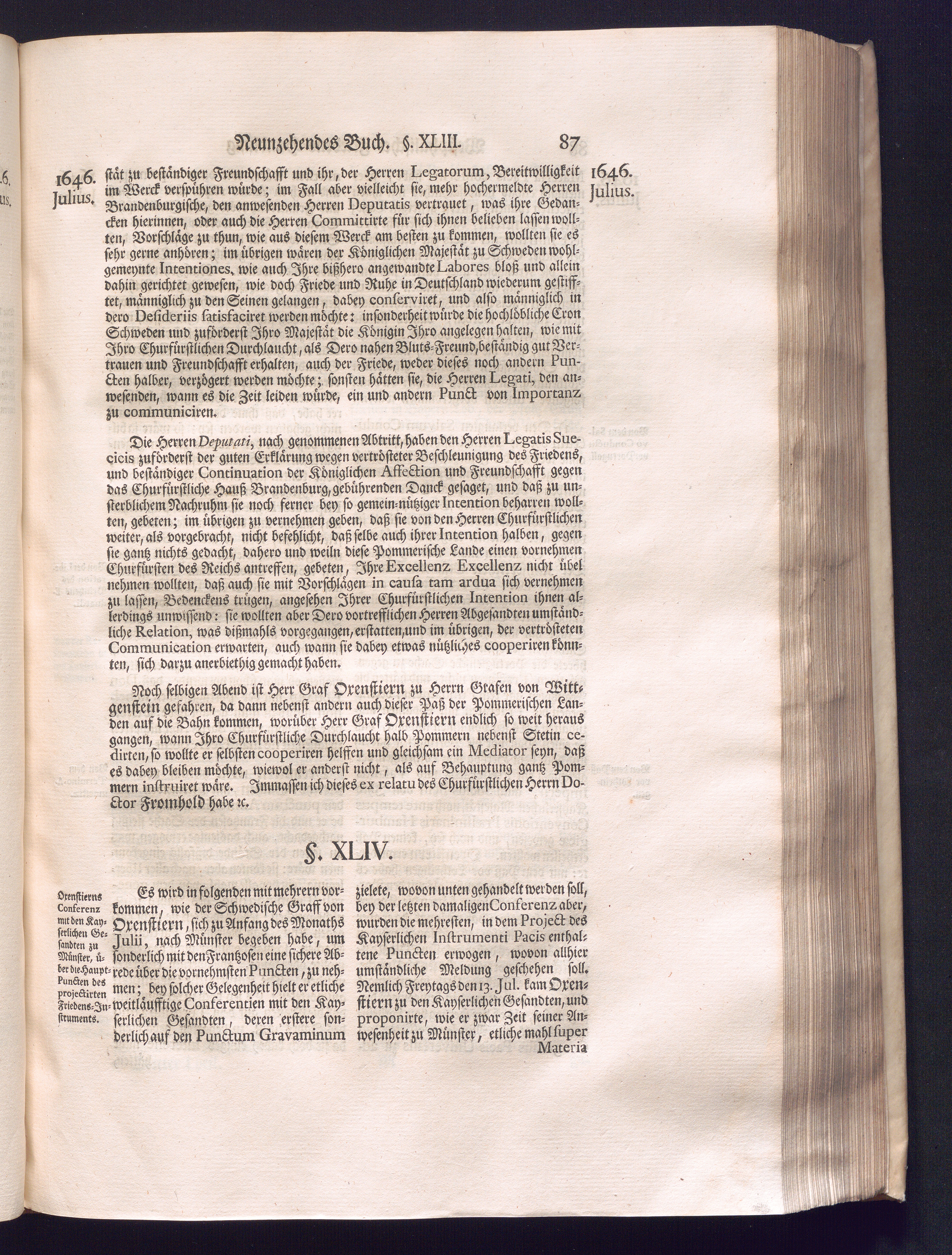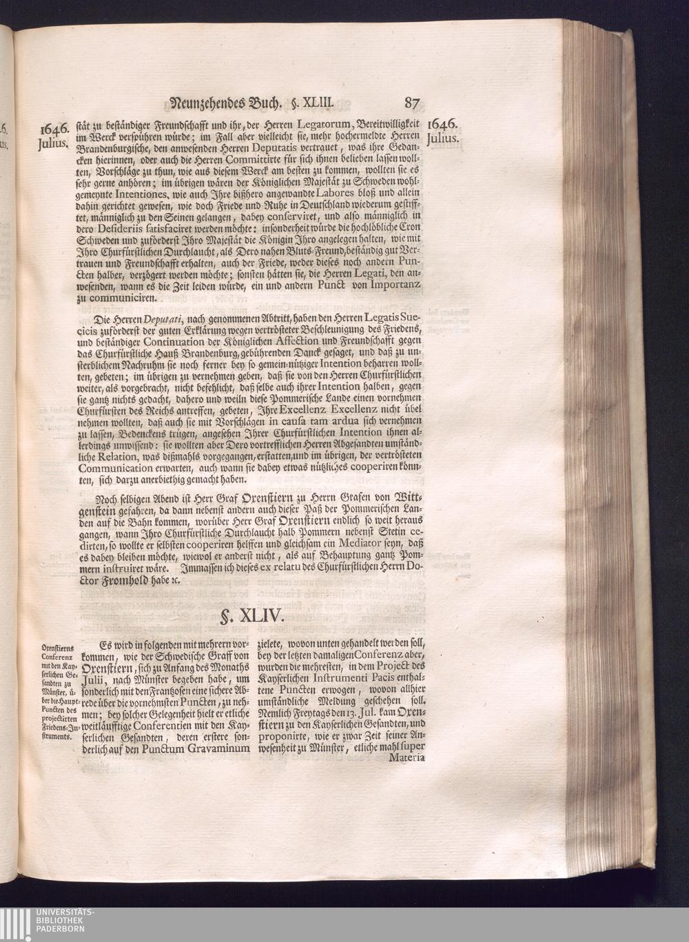 Dritter Theil (1735) Worinnen enthalten, was vom Monath April, biß zu Ende des Jahrs 1646. zwischen Jhro Römisch-Kayserlichen Majestät, dann den Beyden Cronen Franckreich und Schweden, ingleichen des Heiligen Römischen Reichs Chur Fürsten, Fürsten und Ständen, zu Oßnabrück und Münster gehandelt worden