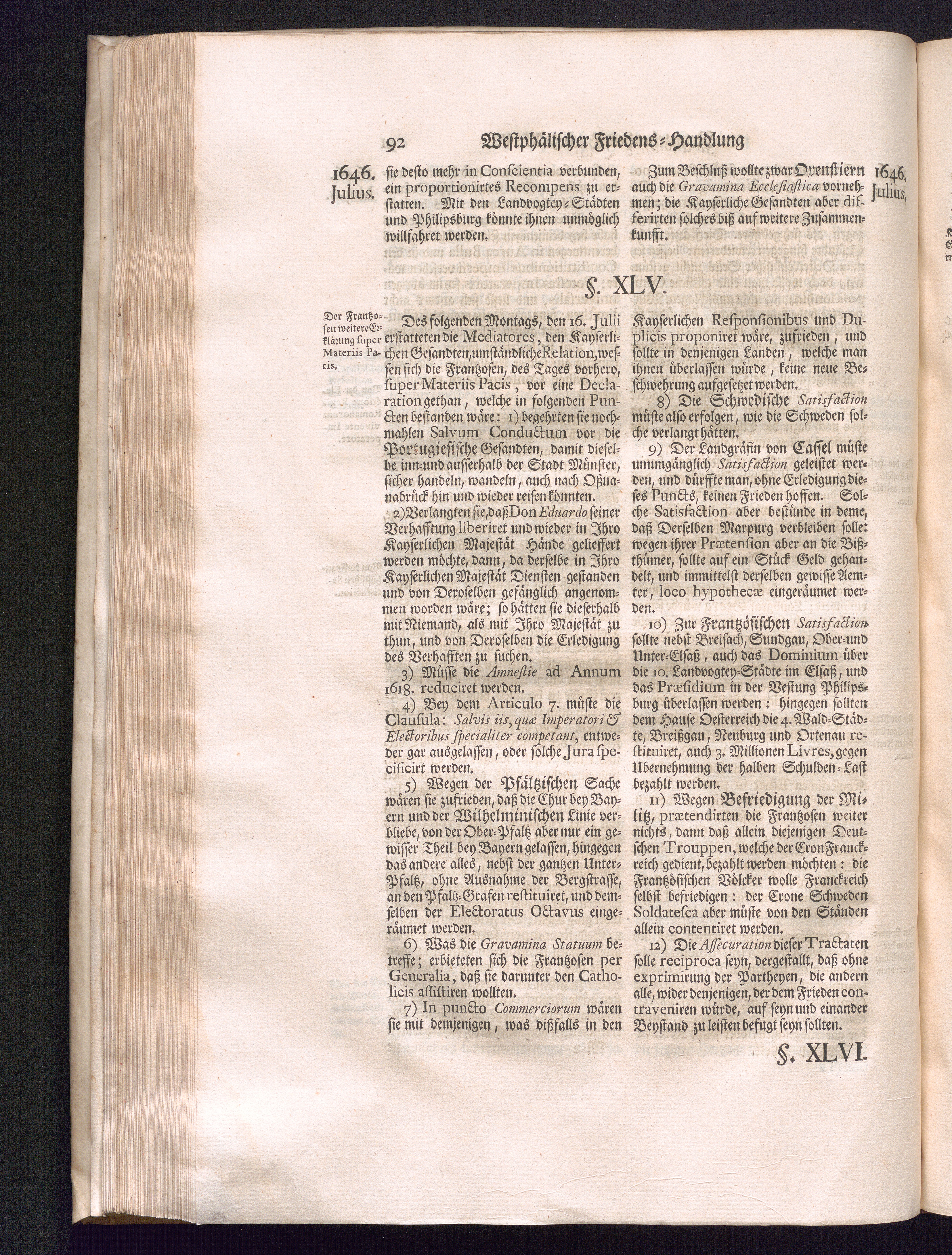 Dritter Theil (1735) Worinnen enthalten, was vom Monath April, biß zu Ende des Jahrs 1646. zwischen Jhro Römisch-Kayserlichen Majestät, dann den Beyden Cronen Franckreich und Schweden, ingleichen des Heiligen Römischen Reichs Chur Fürsten, Fürsten und Ständen, zu Oßnabrück und Münster gehandelt worden