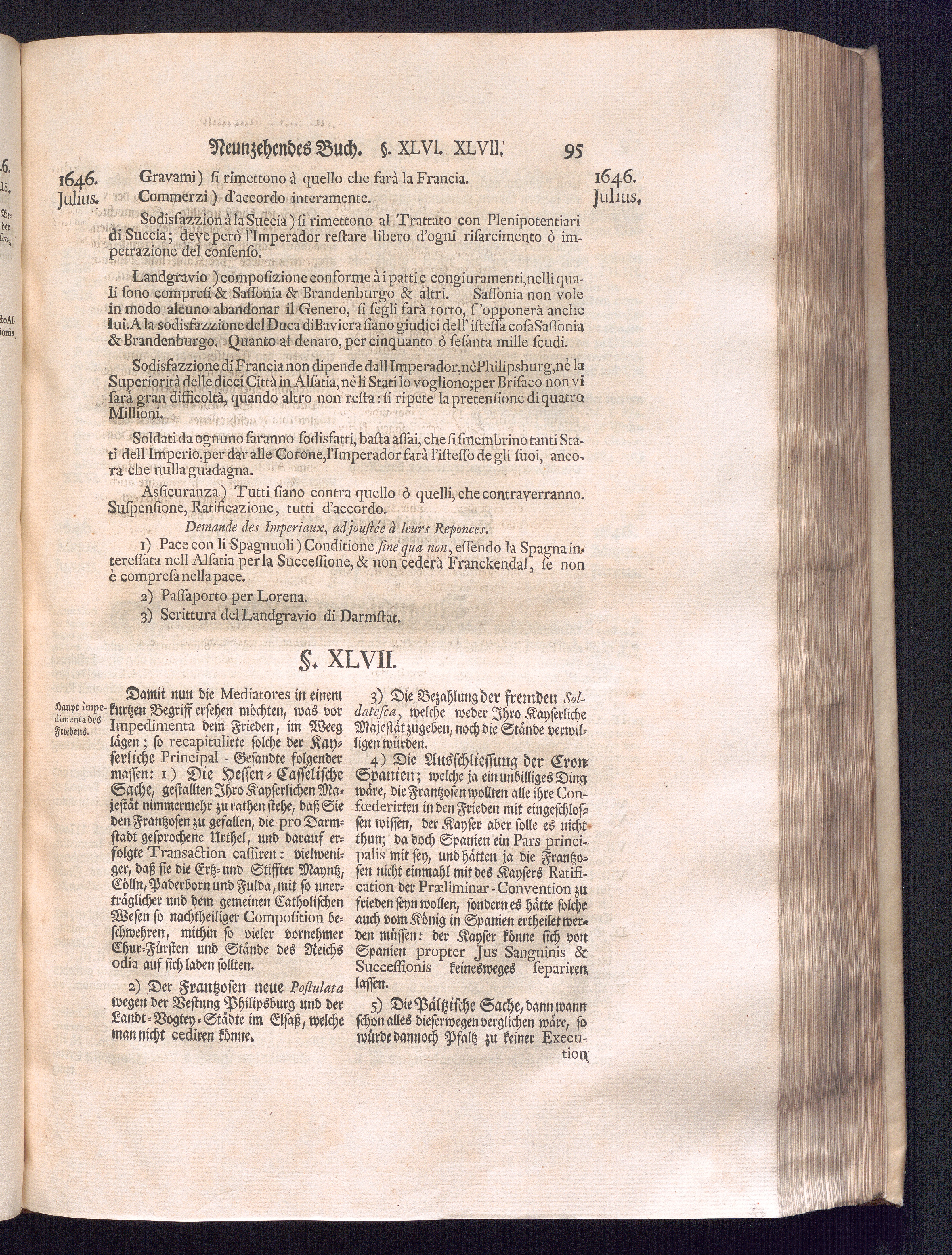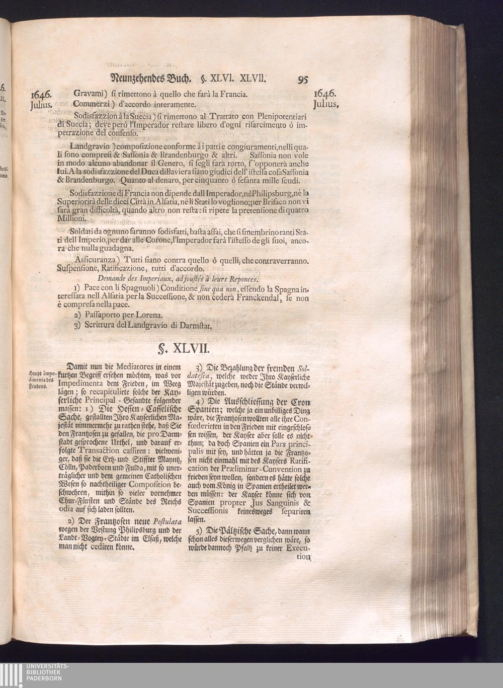 Dritter Theil (1735) Worinnen enthalten, was vom Monath April, biß zu Ende des Jahrs 1646. zwischen Jhro Römisch-Kayserlichen Majestät, dann den Beyden Cronen Franckreich und Schweden, ingleichen des Heiligen Römischen Reichs Chur Fürsten, Fürsten und Ständen, zu Oßnabrück und Münster gehandelt worden