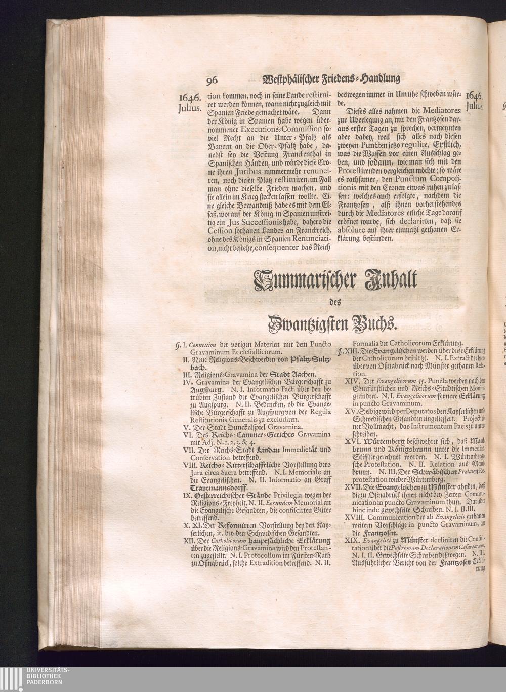 Dritter Theil (1735) Worinnen enthalten, was vom Monath April, biß zu Ende des Jahrs 1646. zwischen Jhro Römisch-Kayserlichen Majestät, dann den Beyden Cronen Franckreich und Schweden, ingleichen des Heiligen Römischen Reichs Chur Fürsten, Fürsten und Ständen, zu Oßnabrück und Münster gehandelt worden