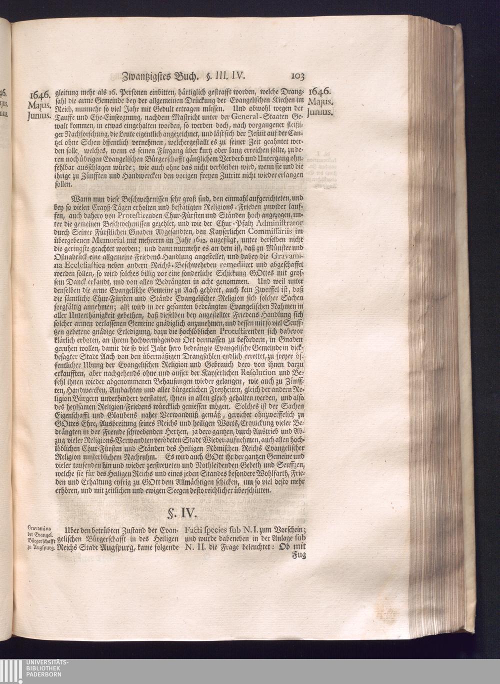 Dritter Theil (1735) Worinnen enthalten, was vom Monath April, biß zu Ende des Jahrs 1646. zwischen Jhro Römisch-Kayserlichen Majestät, dann den Beyden Cronen Franckreich und Schweden, ingleichen des Heiligen Römischen Reichs Chur Fürsten, Fürsten und Ständen, zu Oßnabrück und Münster gehandelt worden