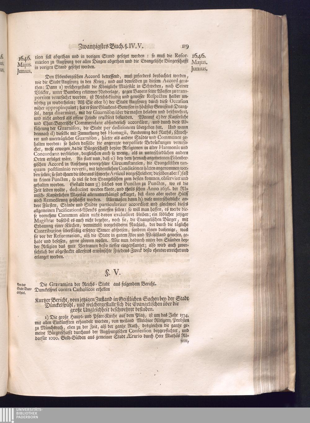 Dritter Theil (1735) Worinnen enthalten, was vom Monath April, biß zu Ende des Jahrs 1646. zwischen Jhro Römisch-Kayserlichen Majestät, dann den Beyden Cronen Franckreich und Schweden, ingleichen des Heiligen Römischen Reichs Chur Fürsten, Fürsten und Ständen, zu Oßnabrück und Münster gehandelt worden