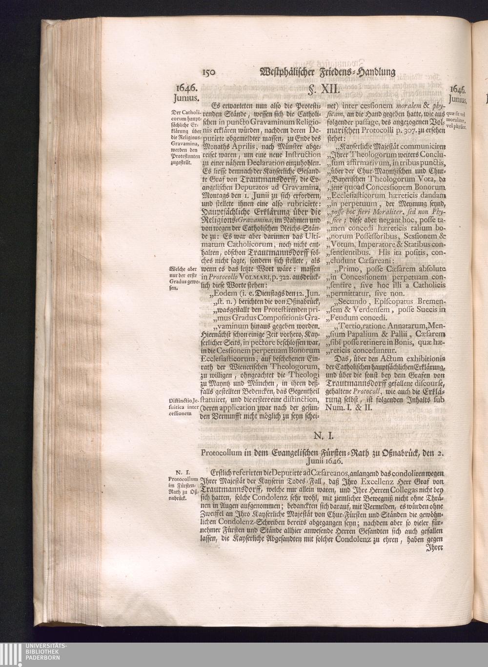 Dritter Theil (1735) Worinnen enthalten, was vom Monath April, biß zu Ende des Jahrs 1646. zwischen Jhro Römisch-Kayserlichen Majestät, dann den Beyden Cronen Franckreich und Schweden, ingleichen des Heiligen Römischen Reichs Chur Fürsten, Fürsten und Ständen, zu Oßnabrück und Münster gehandelt worden