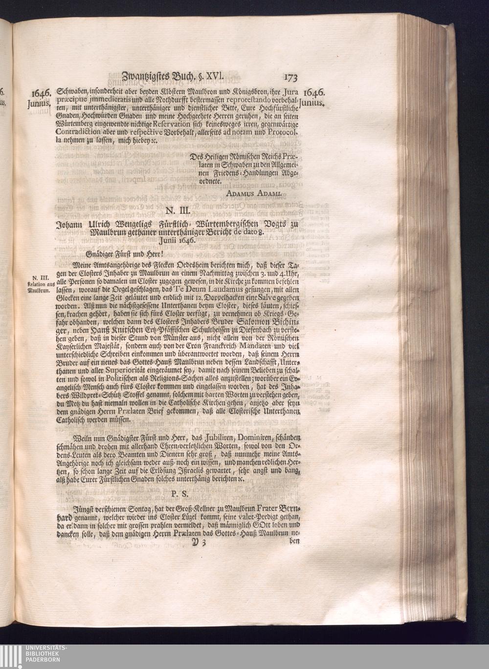 Dritter Theil (1735) Worinnen enthalten, was vom Monath April, biß zu Ende des Jahrs 1646. zwischen Jhro Römisch-Kayserlichen Majestät, dann den Beyden Cronen Franckreich und Schweden, ingleichen des Heiligen Römischen Reichs Chur Fürsten, Fürsten und Ständen, zu Oßnabrück und Münster gehandelt worden