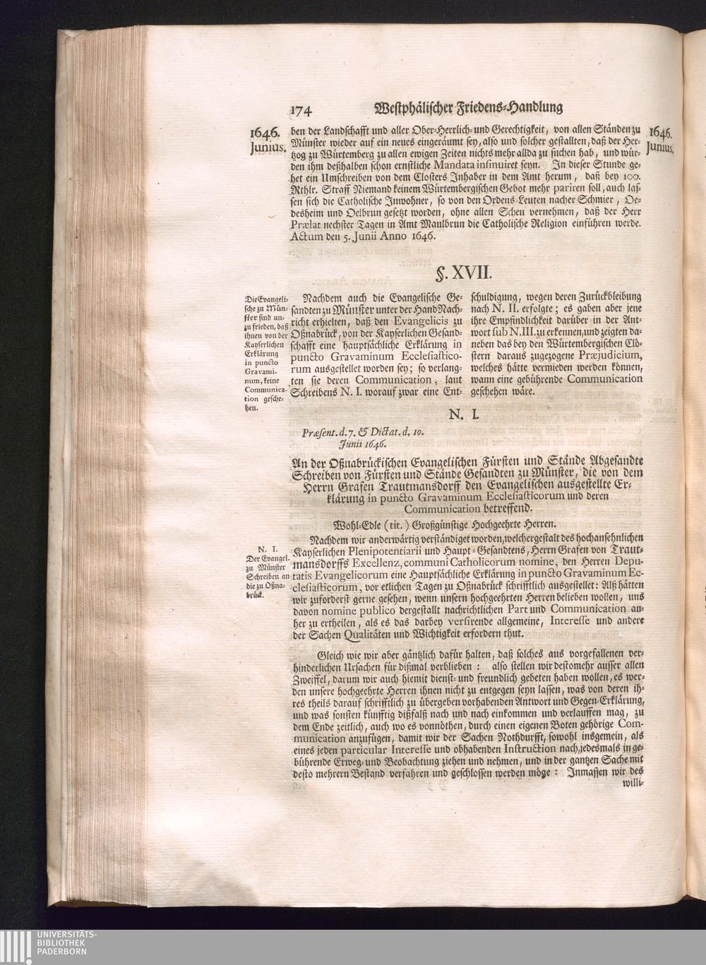Dritter Theil (1735) Worinnen enthalten, was vom Monath April, biß zu Ende des Jahrs 1646. zwischen Jhro Römisch-Kayserlichen Majestät, dann den Beyden Cronen Franckreich und Schweden, ingleichen des Heiligen Römischen Reichs Chur Fürsten, Fürsten und Ständen, zu Oßnabrück und Münster gehandelt worden