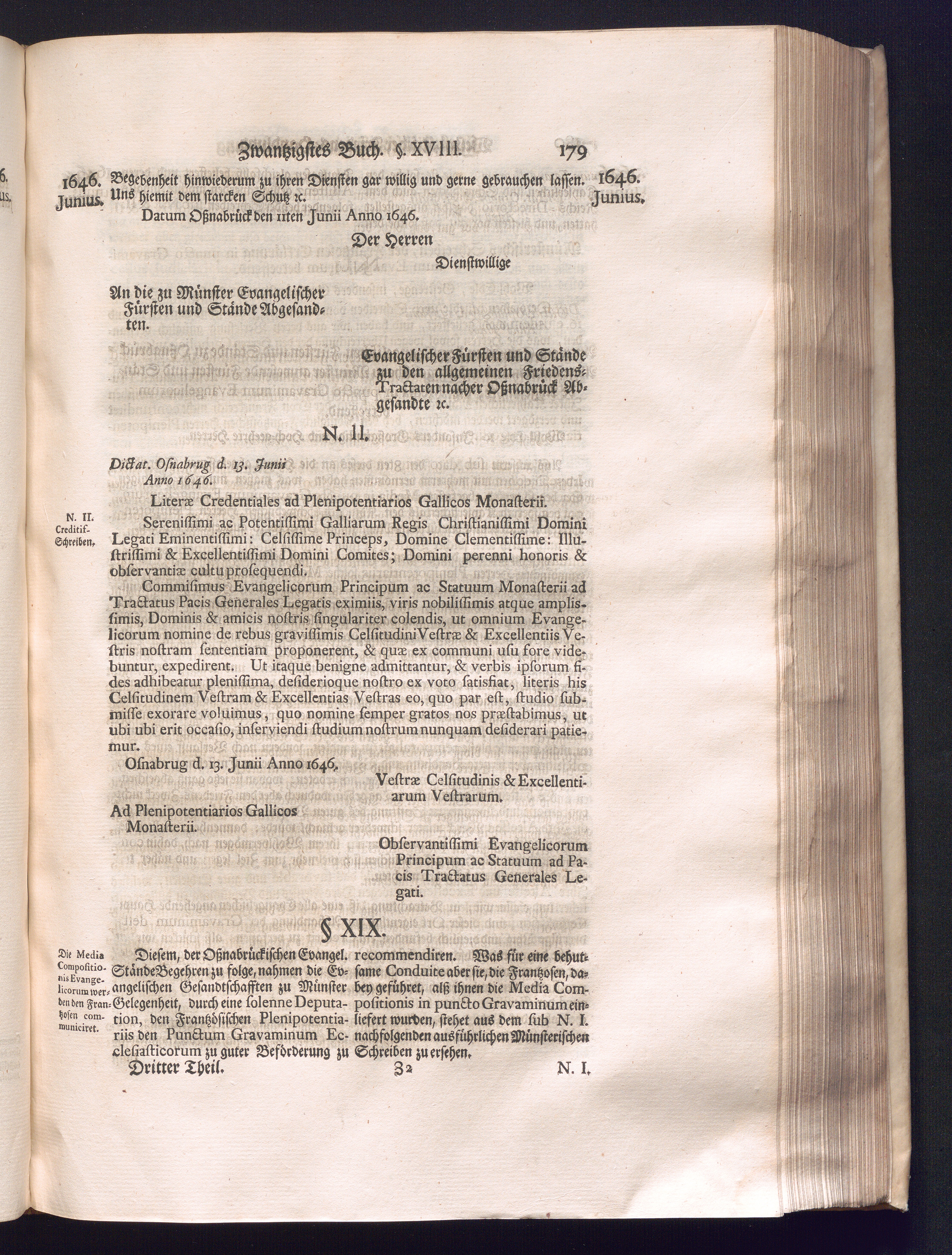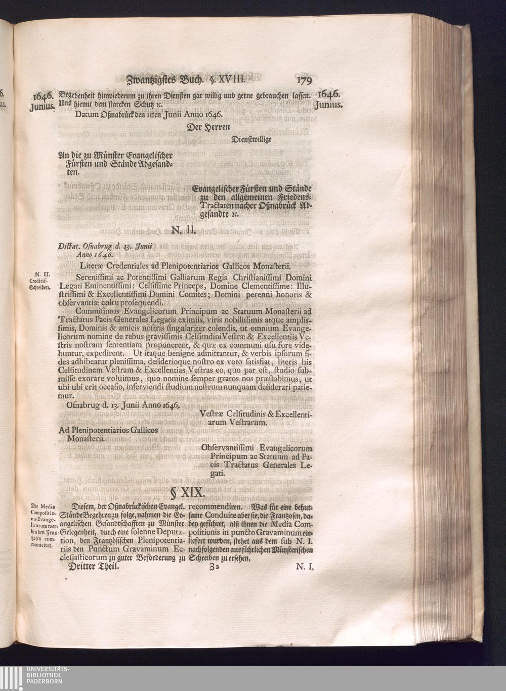 Dritter Theil (1735) Worinnen enthalten, was vom Monath April, biß zu Ende des Jahrs 1646. zwischen Jhro Römisch-Kayserlichen Majestät, dann den Beyden Cronen Franckreich und Schweden, ingleichen des Heiligen Römischen Reichs Chur Fürsten, Fürsten und Ständen, zu Oßnabrück und Münster gehandelt worden