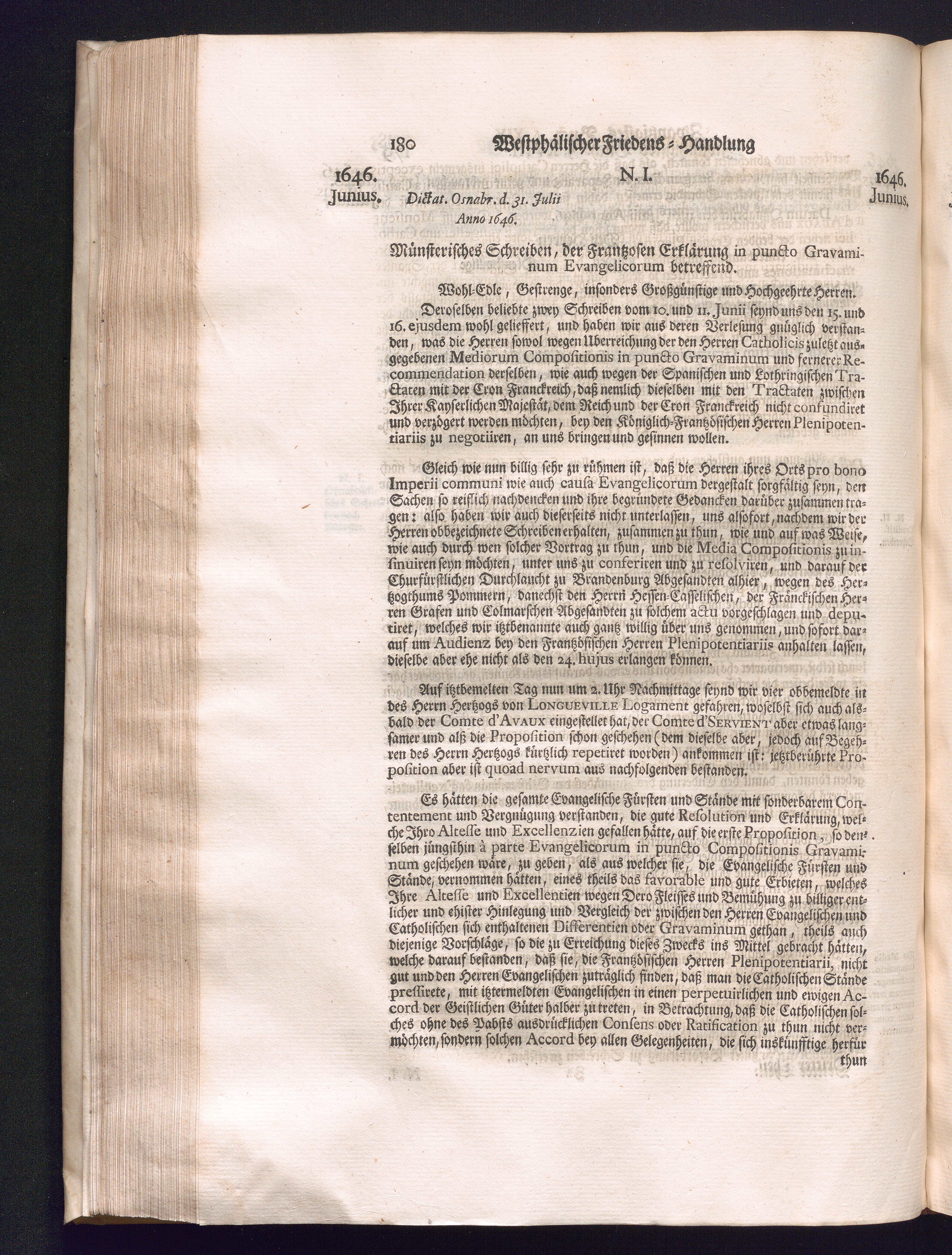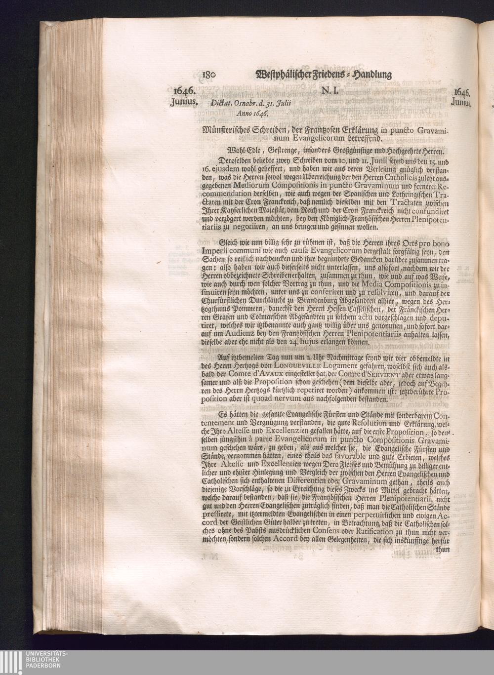 Dritter Theil (1735) Worinnen enthalten, was vom Monath April, biß zu Ende des Jahrs 1646. zwischen Jhro Römisch-Kayserlichen Majestät, dann den Beyden Cronen Franckreich und Schweden, ingleichen des Heiligen Römischen Reichs Chur Fürsten, Fürsten und Ständen, zu Oßnabrück und Münster gehandelt worden