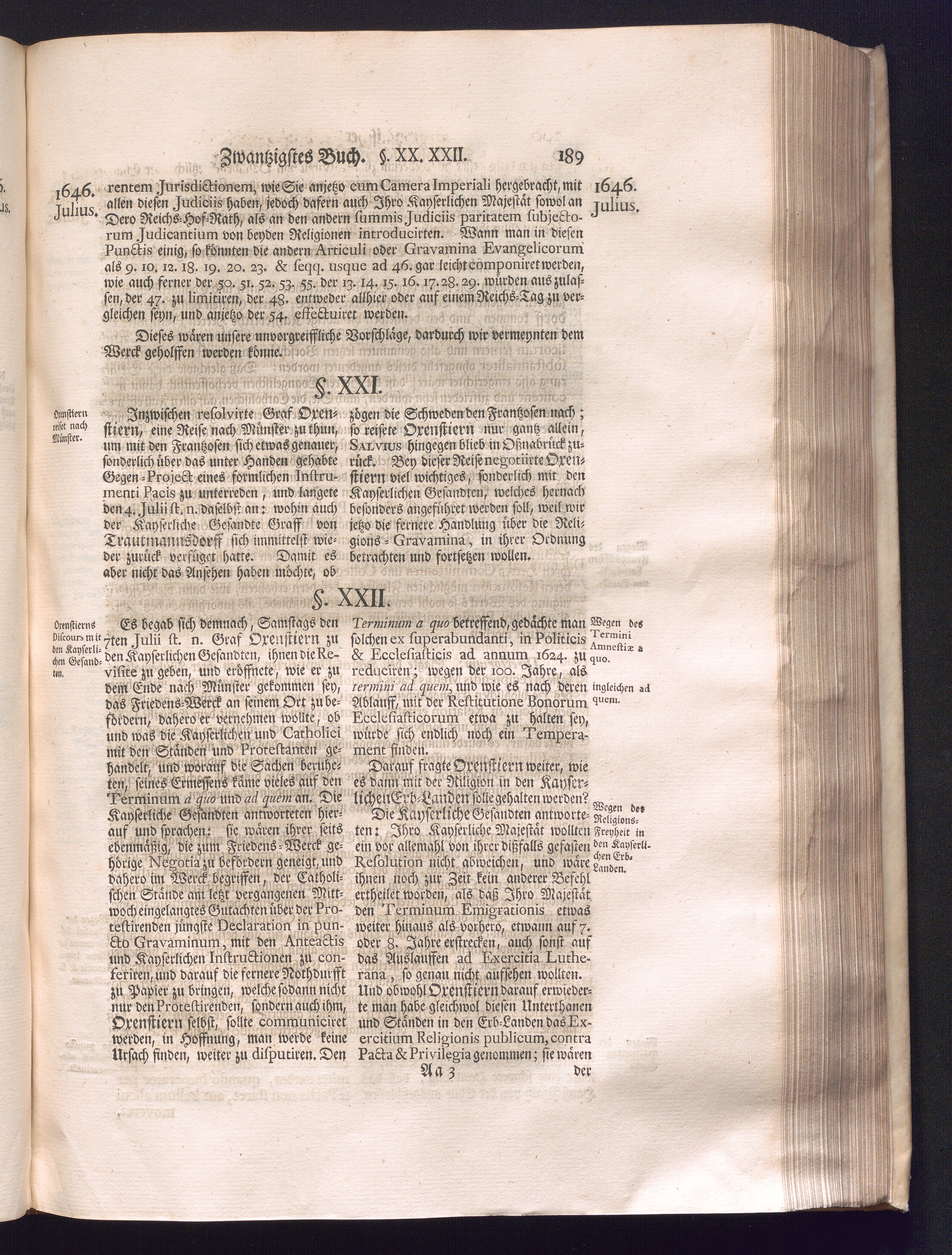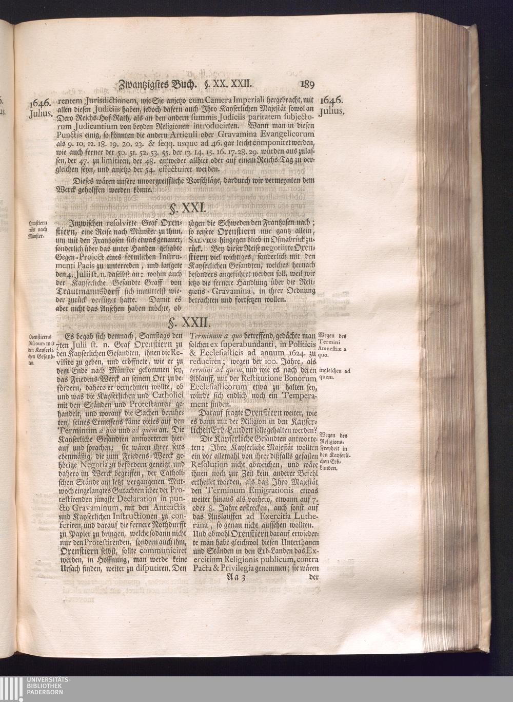 Dritter Theil (1735) Worinnen enthalten, was vom Monath April, biß zu Ende des Jahrs 1646. zwischen Jhro Römisch-Kayserlichen Majestät, dann den Beyden Cronen Franckreich und Schweden, ingleichen des Heiligen Römischen Reichs Chur Fürsten, Fürsten und Ständen, zu Oßnabrück und Münster gehandelt worden