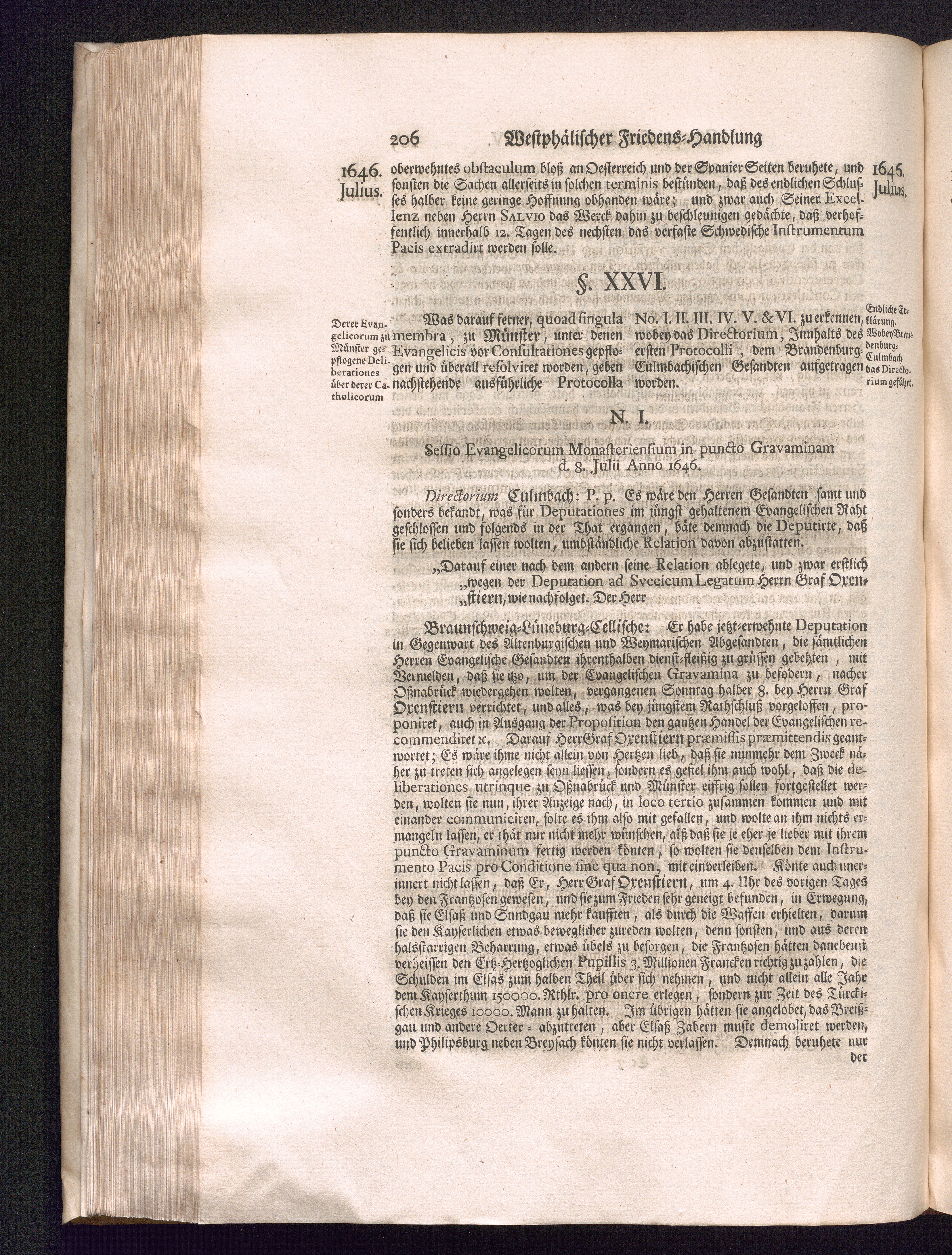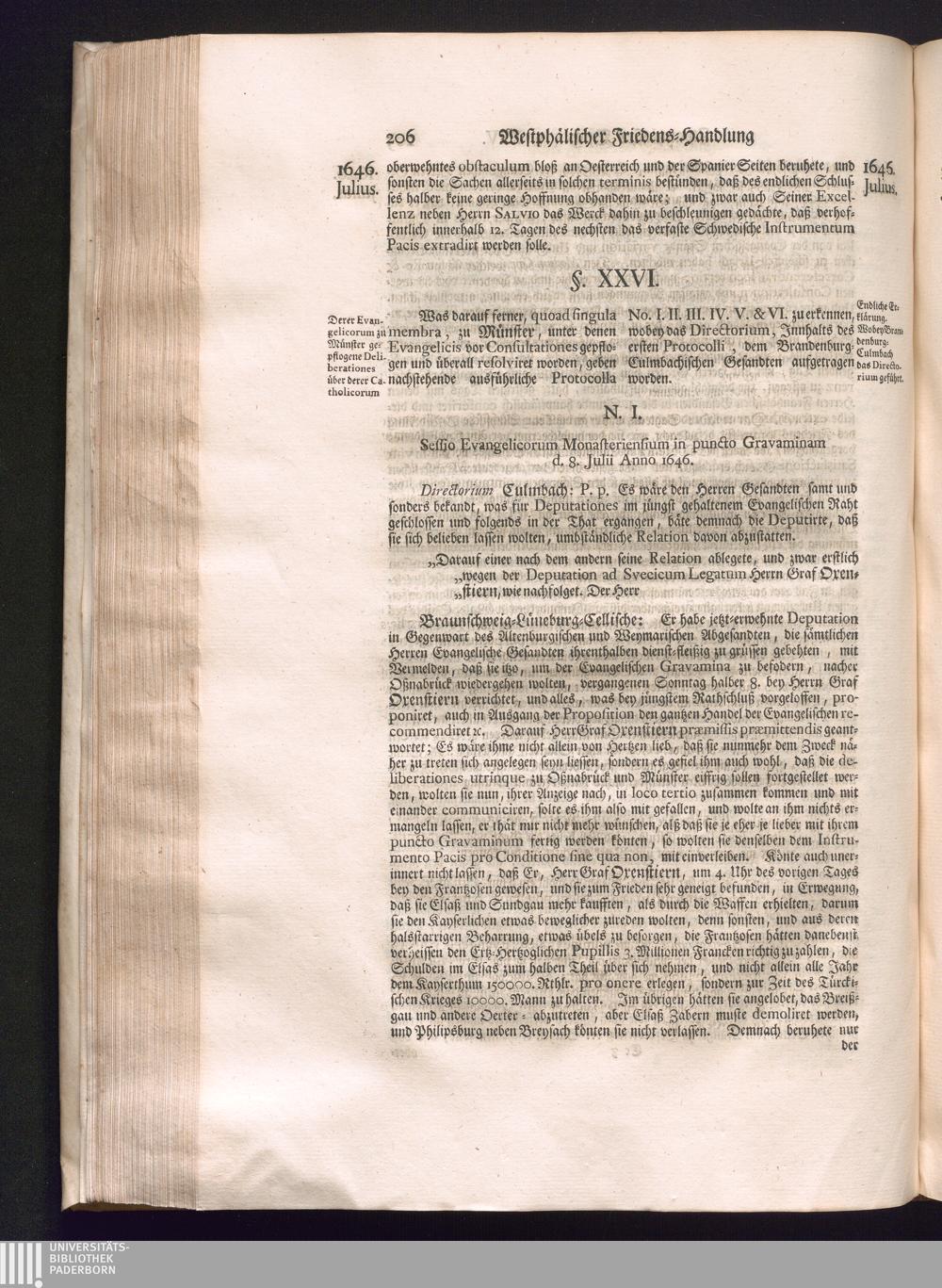 Dritter Theil (1735) Worinnen enthalten, was vom Monath April, biß zu Ende des Jahrs 1646. zwischen Jhro Römisch-Kayserlichen Majestät, dann den Beyden Cronen Franckreich und Schweden, ingleichen des Heiligen Römischen Reichs Chur Fürsten, Fürsten und Ständen, zu Oßnabrück und Münster gehandelt worden