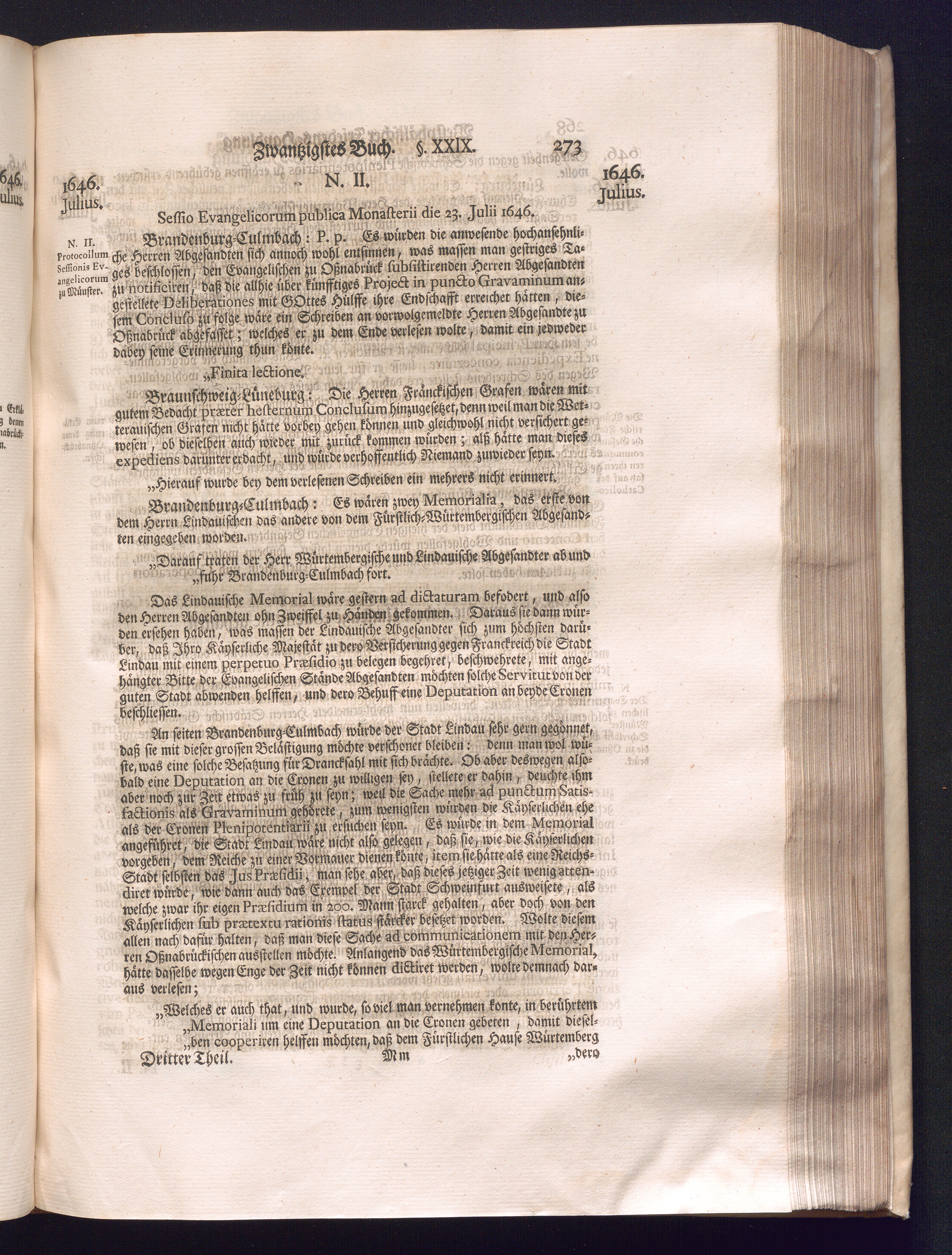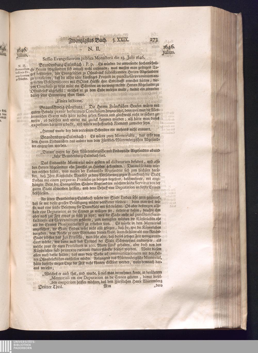 Dritter Theil (1735) Worinnen enthalten, was vom Monath April, biß zu Ende des Jahrs 1646. zwischen Jhro Römisch-Kayserlichen Majestät, dann den Beyden Cronen Franckreich und Schweden, ingleichen des Heiligen Römischen Reichs Chur Fürsten, Fürsten und Ständen, zu Oßnabrück und Münster gehandelt worden