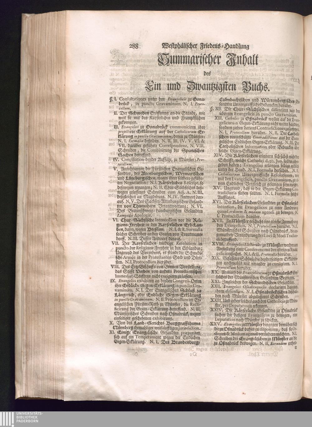 Dritter Theil (1735) Worinnen enthalten, was vom Monath April, biß zu Ende des Jahrs 1646. zwischen Jhro Römisch-Kayserlichen Majestät, dann den Beyden Cronen Franckreich und Schweden, ingleichen des Heiligen Römischen Reichs Chur Fürsten, Fürsten und Ständen, zu Oßnabrück und Münster gehandelt worden