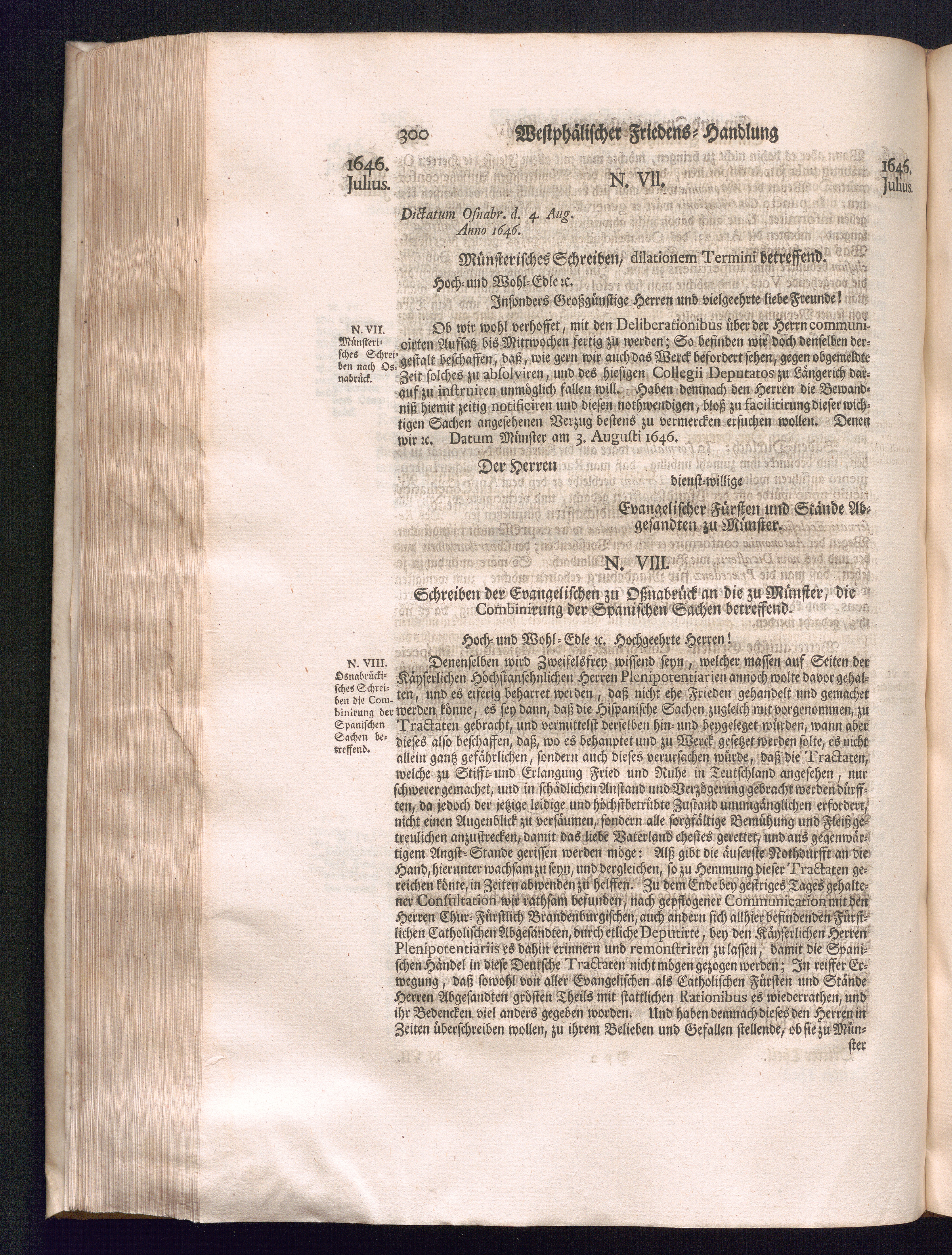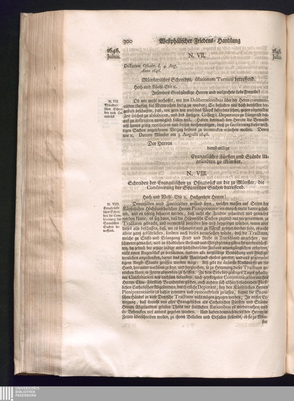 Dritter Theil (1735) Worinnen enthalten, was vom Monath April, biß zu Ende des Jahrs 1646. zwischen Jhro Römisch-Kayserlichen Majestät, dann den Beyden Cronen Franckreich und Schweden, ingleichen des Heiligen Römischen Reichs Chur Fürsten, Fürsten und Ständen, zu Oßnabrück und Münster gehandelt worden