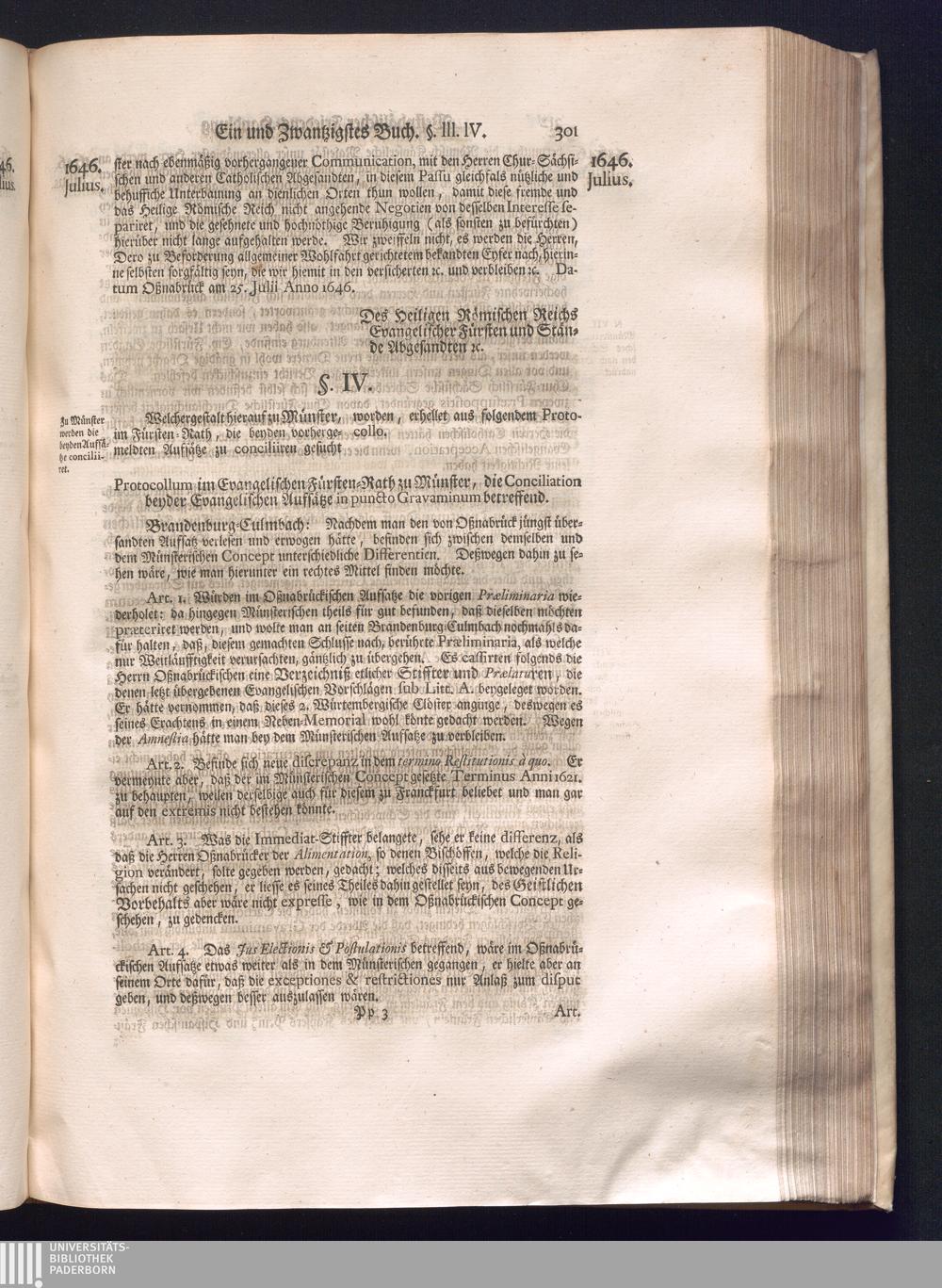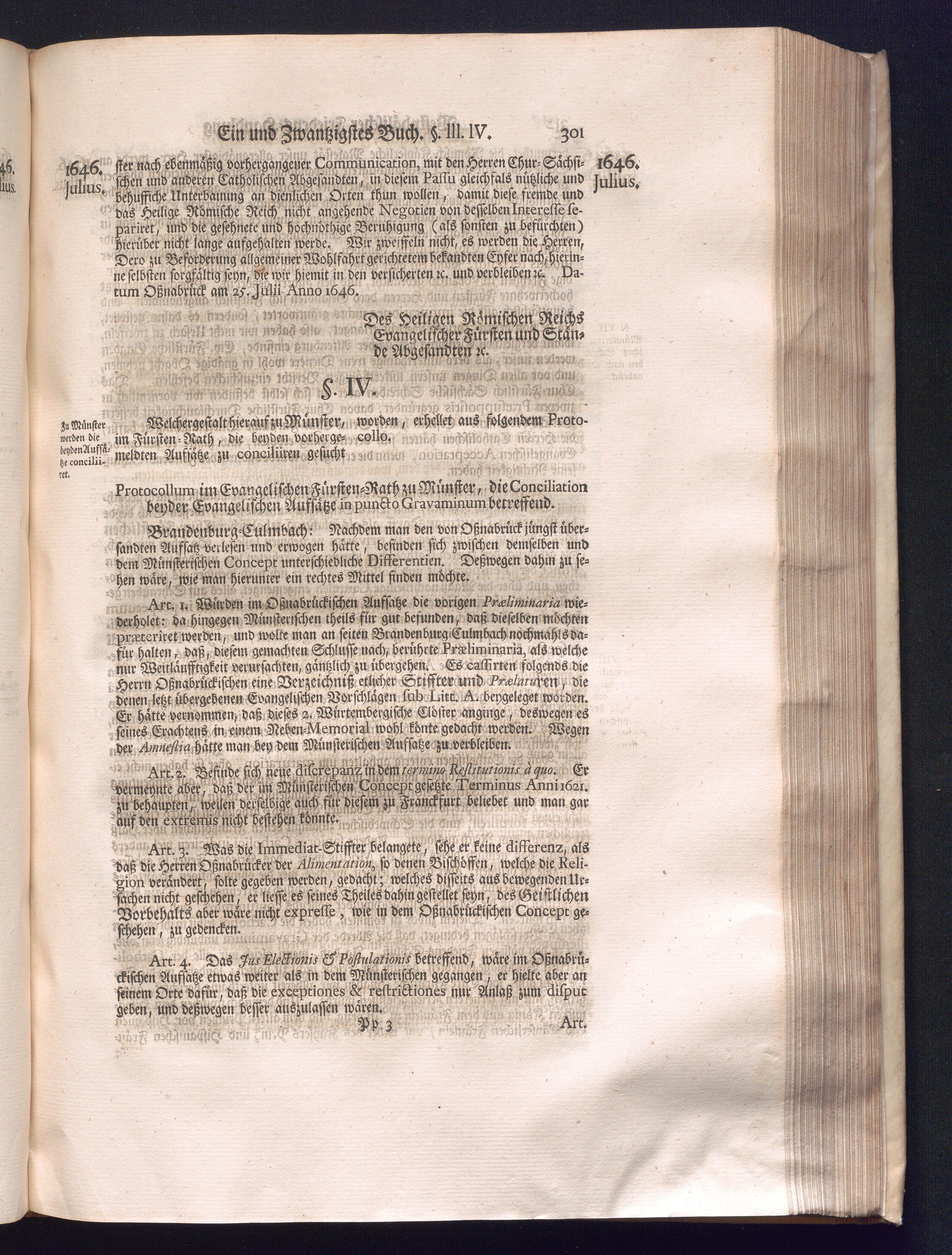 Dritter Theil (1735) Worinnen enthalten, was vom Monath April, biß zu Ende des Jahrs 1646. zwischen Jhro Römisch-Kayserlichen Majestät, dann den Beyden Cronen Franckreich und Schweden, ingleichen des Heiligen Römischen Reichs Chur Fürsten, Fürsten und Ständen, zu Oßnabrück und Münster gehandelt worden