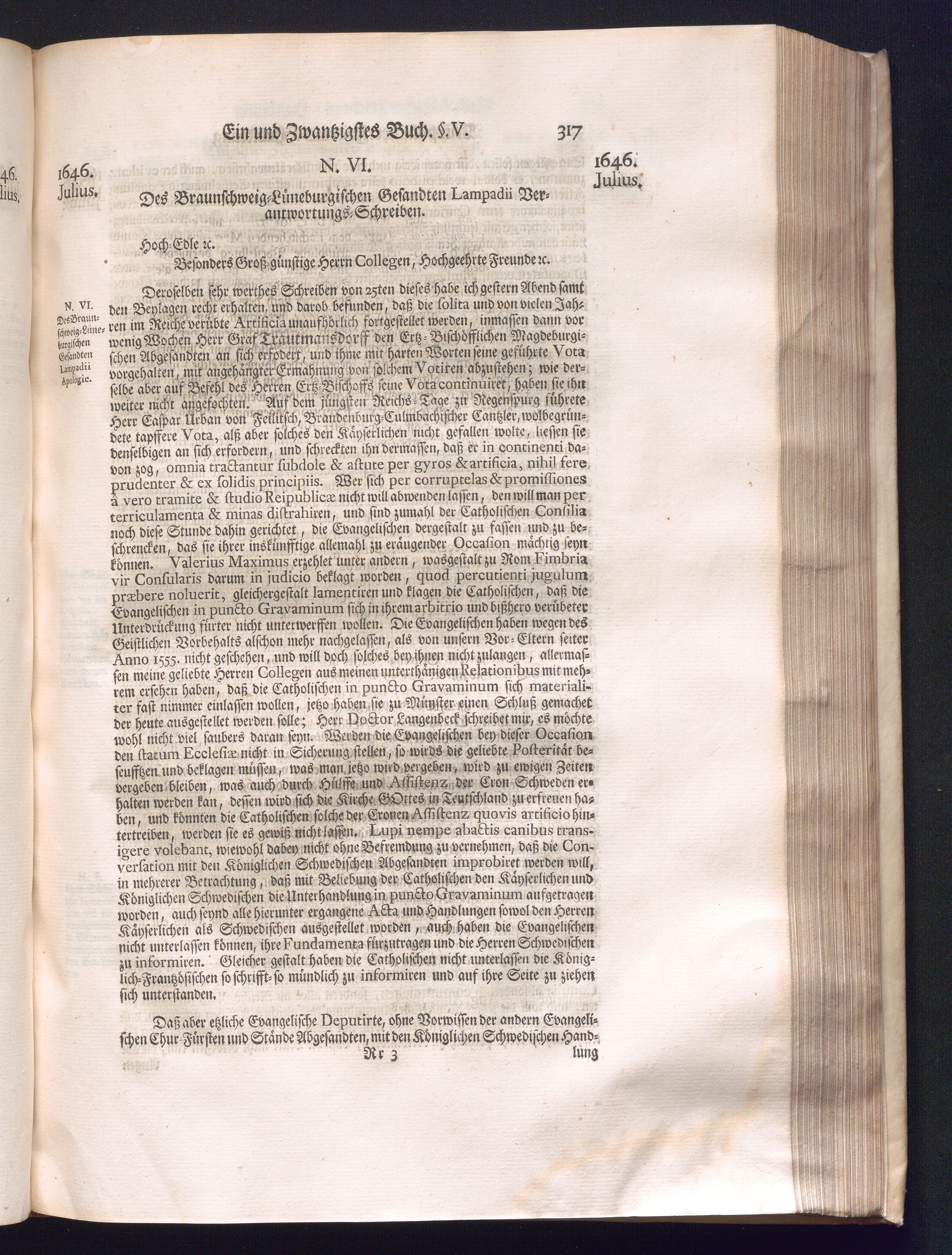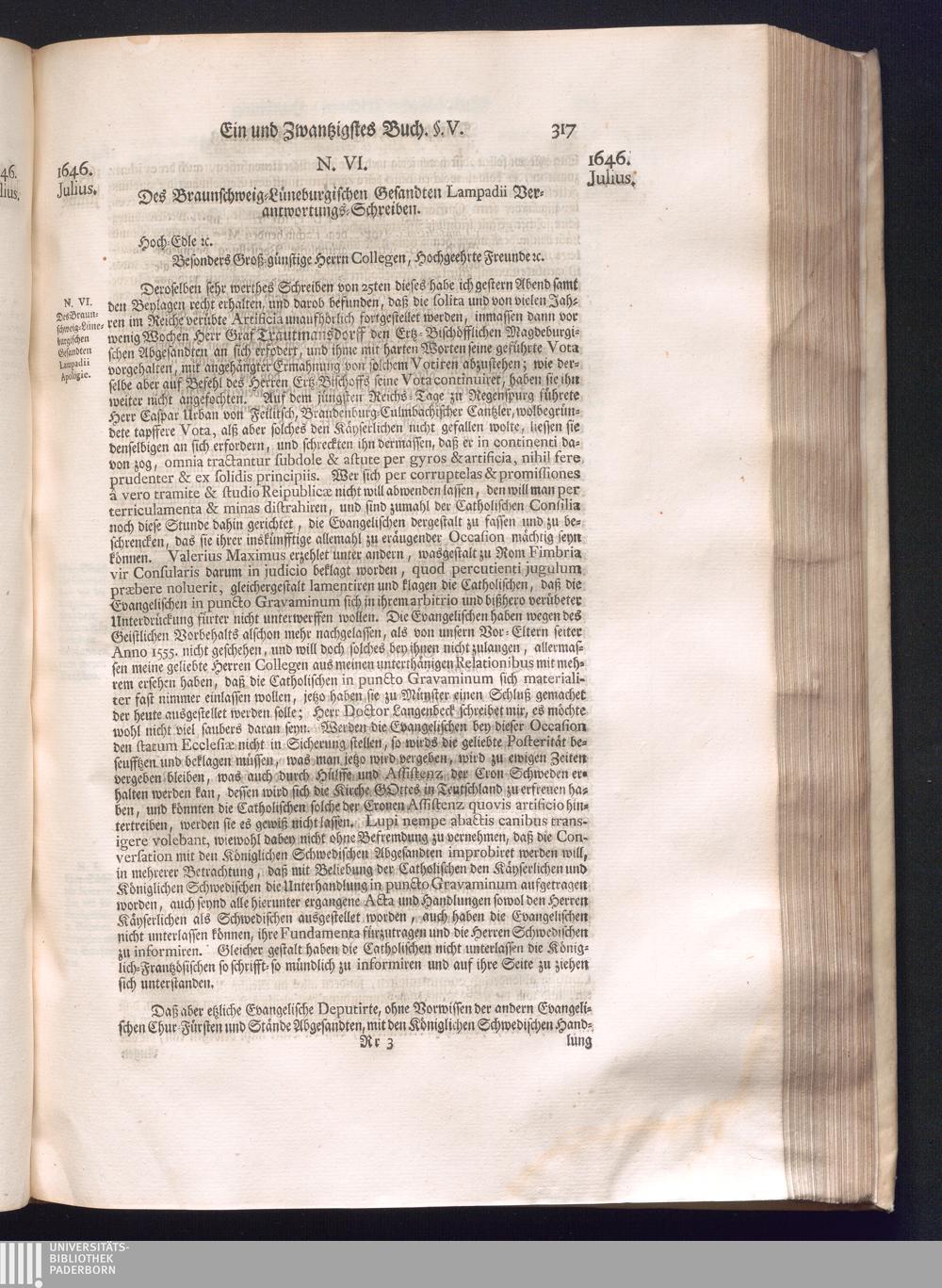 Dritter Theil (1735) Worinnen enthalten, was vom Monath April, biß zu Ende des Jahrs 1646. zwischen Jhro Römisch-Kayserlichen Majestät, dann den Beyden Cronen Franckreich und Schweden, ingleichen des Heiligen Römischen Reichs Chur Fürsten, Fürsten und Ständen, zu Oßnabrück und Münster gehandelt worden