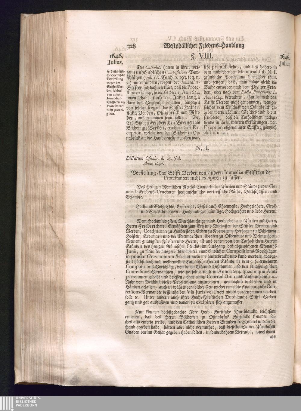 Dritter Theil (1735) Worinnen enthalten, was vom Monath April, biß zu Ende des Jahrs 1646. zwischen Jhro Römisch-Kayserlichen Majestät, dann den Beyden Cronen Franckreich und Schweden, ingleichen des Heiligen Römischen Reichs Chur Fürsten, Fürsten und Ständen, zu Oßnabrück und Münster gehandelt worden