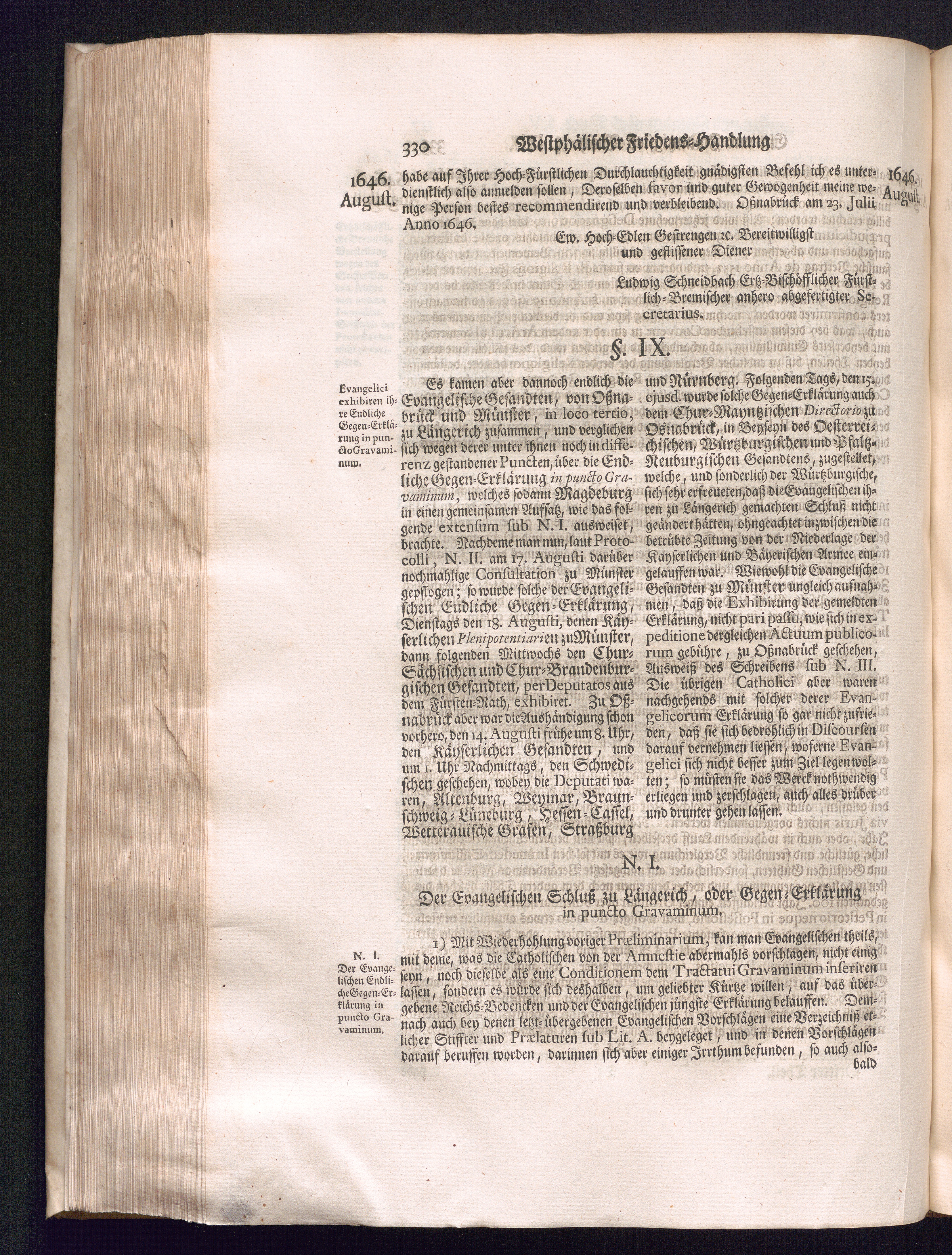 Dritter Theil (1735) Worinnen enthalten, was vom Monath April, biß zu Ende des Jahrs 1646. zwischen Jhro Römisch-Kayserlichen Majestät, dann den Beyden Cronen Franckreich und Schweden, ingleichen des Heiligen Römischen Reichs Chur Fürsten, Fürsten und Ständen, zu Oßnabrück und Münster gehandelt worden