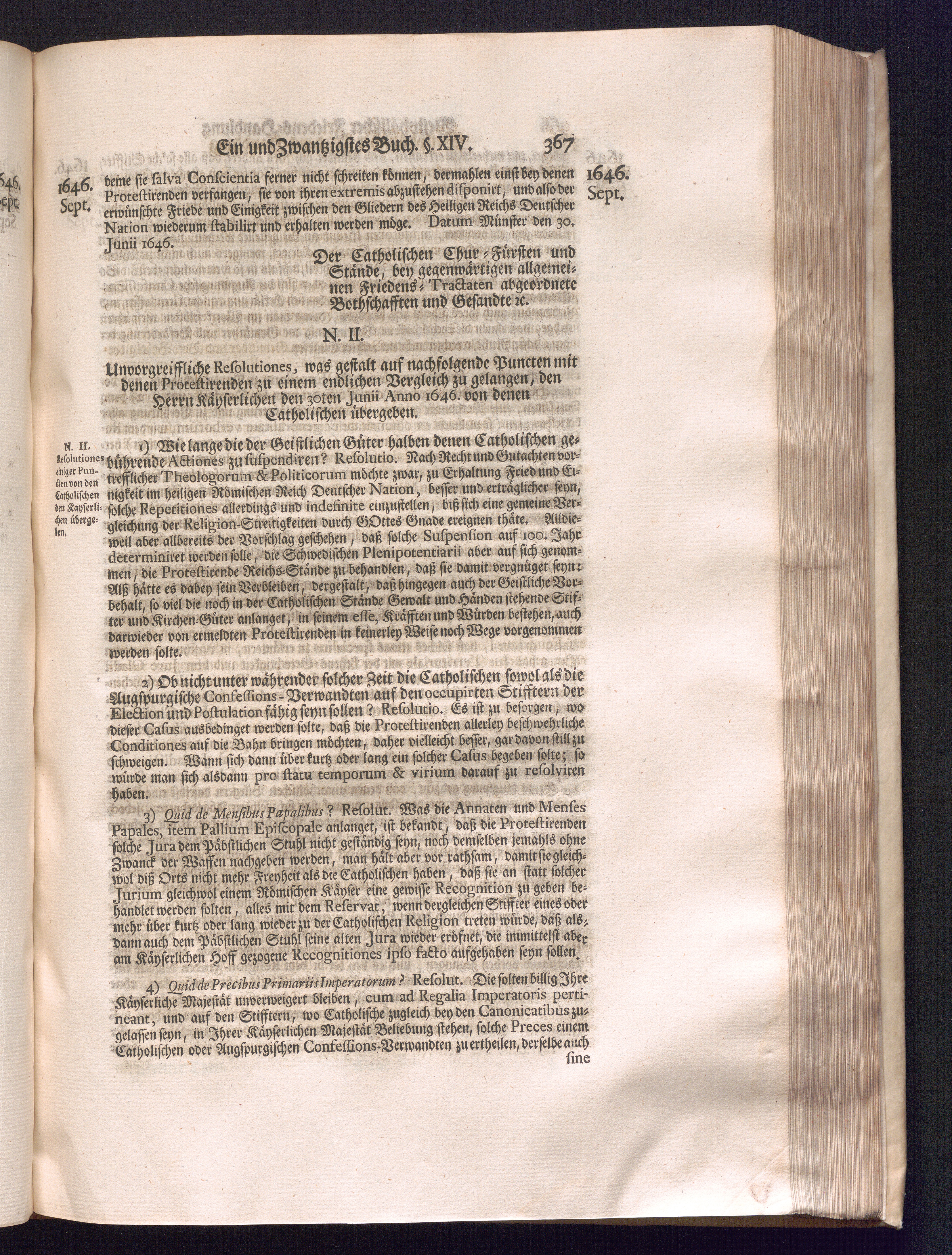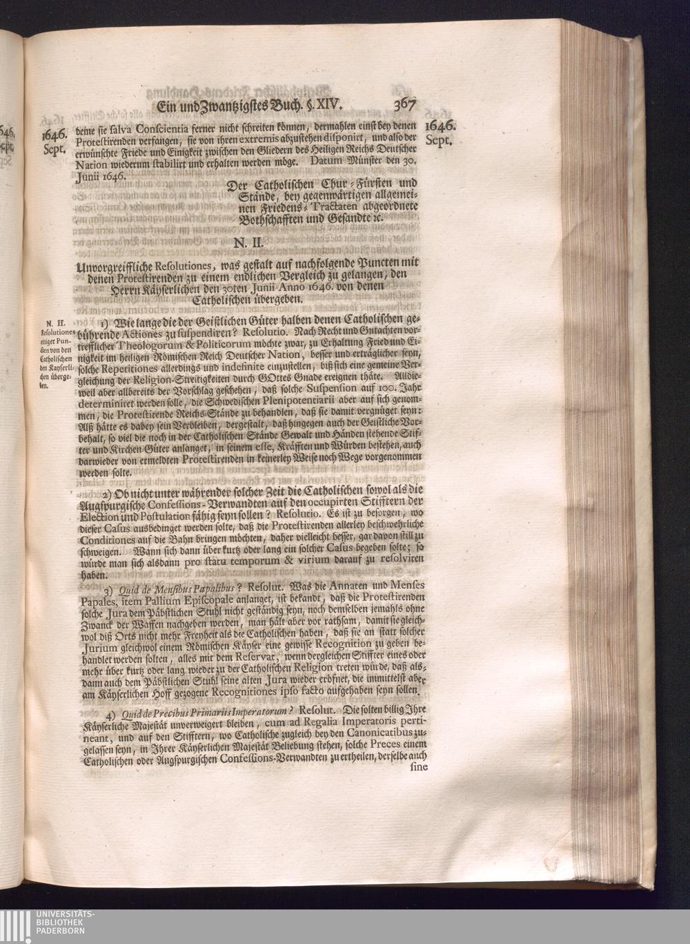 Dritter Theil (1735) Worinnen enthalten, was vom Monath April, biß zu Ende des Jahrs 1646. zwischen Jhro Römisch-Kayserlichen Majestät, dann den Beyden Cronen Franckreich und Schweden, ingleichen des Heiligen Römischen Reichs Chur Fürsten, Fürsten und Ständen, zu Oßnabrück und Münster gehandelt worden