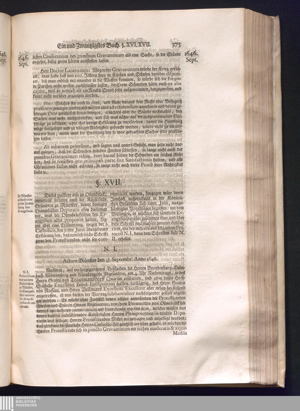 Dritter Theil (1735) Worinnen enthalten, was vom Monath April, biß zu Ende des Jahrs 1646. zwischen Jhro Römisch-Kayserlichen Majestät, dann den Beyden Cronen Franckreich und Schweden, ingleichen des Heiligen Römischen Reichs Chur Fürsten, Fürsten und Ständen, zu Oßnabrück und Münster gehandelt worden