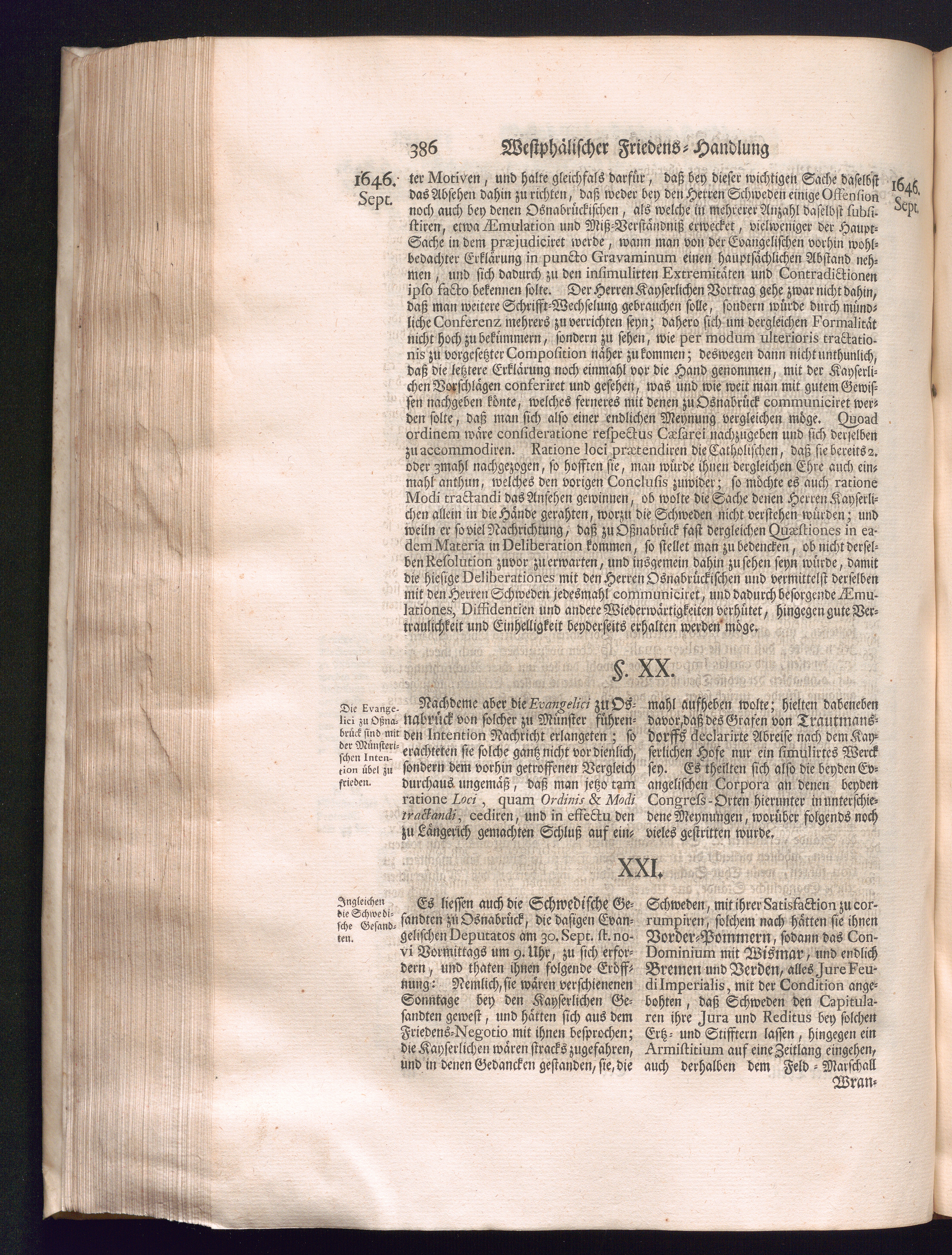 Dritter Theil (1735) Worinnen enthalten, was vom Monath April, biß zu Ende des Jahrs 1646. zwischen Jhro Römisch-Kayserlichen Majestät, dann den Beyden Cronen Franckreich und Schweden, ingleichen des Heiligen Römischen Reichs Chur Fürsten, Fürsten und Ständen, zu Oßnabrück und Münster gehandelt worden
